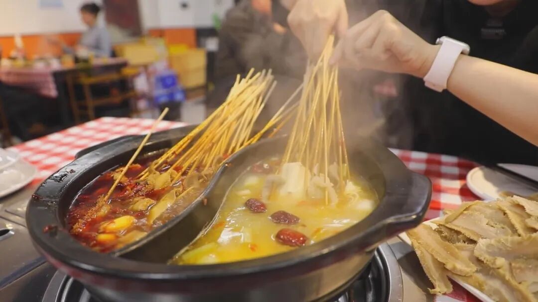 锅底有酸菜、滋补、五香、微辣、香辣、麻辣等,价格都是38元,可以单选也可以选择鸳鸯锅。锅底自带的有20串牛肚、20串豆皮和20串牛肠。怎么样,是不是光是听着就让人很心动?!