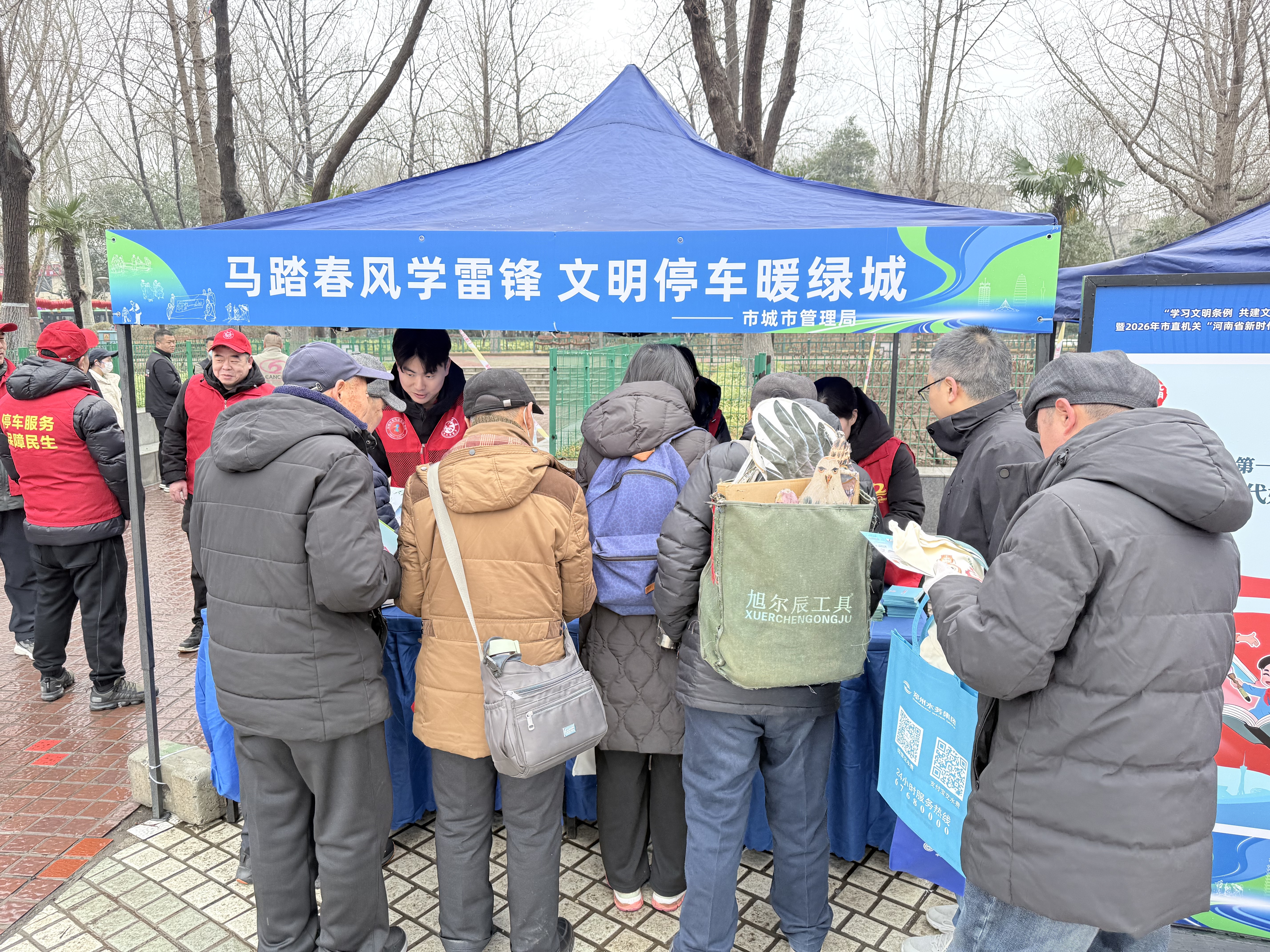 春风送暖,文明同行。3月2日上午,作为2026年市直机关“河南省新时代文明实践推动周”系列活动的重头戏,郑州市城市管理局组织郑州市停车服务保障中心的志愿者们,在绿城广场开展“马踏春风学雷锋 文明停车暖春城”主题宣传活动。他们通过接地气的宣传和面对面的服务,将文明条例的“书面语”变成市民的“家常话”,把便民服务的“干货”送到群众心坎上。