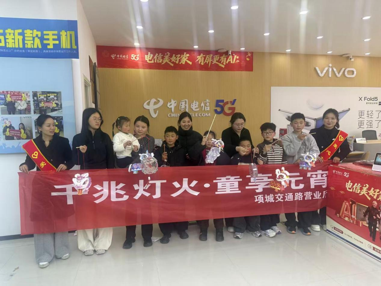 为传承中华优秀传统文化,丰富亲子家庭节日生活,近日,中国电信项城交通路自营厅爱心翼站举办“千兆灯火·童享元宵”主题活动,邀请周边亲子家庭走进营业厅,动手制作创意灯笼,在欢声笑语中感受传统民俗魅力,体验电信暖心服务。