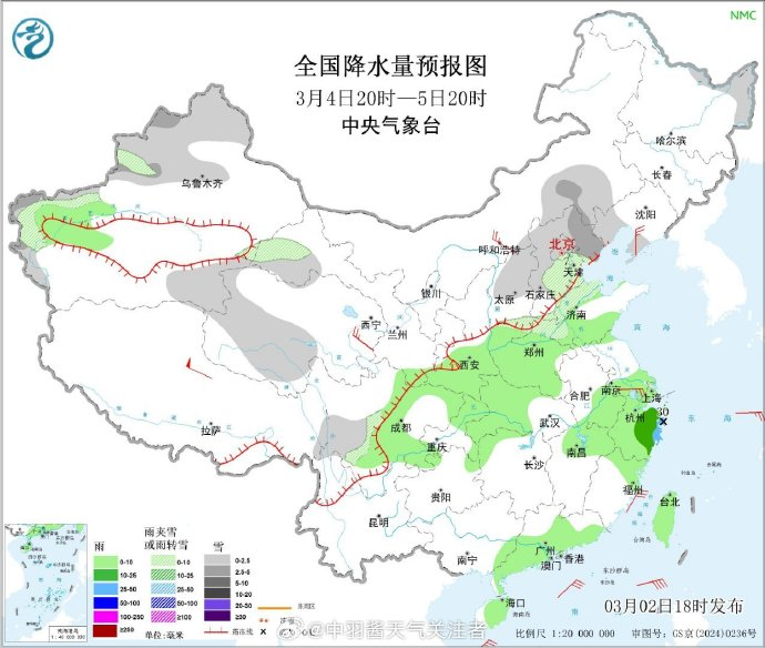 今天(3月2日),中东部降水将有所减少减弱,但江南、华南等地仍有较大范围降雨,强降雨分布较零散。受冷空气和阴雨雪共同影响,本周北方多地气温波动明显,华北一带体感湿冷,公众外出需添衣保暖。 中东部降水逐渐减少减弱 华南局地仍需防范暴雨 昨天,