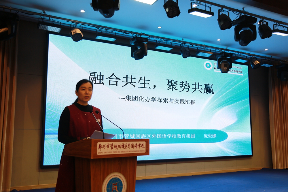 在经验交流环节,四所学校代表结合办学实践,分享了教育教学改革的优秀经验:管城区东关小学副校长谢艳萍介绍以教学评一体化构建“最童年”课程与新课堂,形成系统化育人模式;郑州市回民初级中学校长周增强分享立体化教研与“四精课堂”,实现师生双向提升,办学质量与育人成效显著;郑州市第二十九中学副校长孙忠伟重点介绍俄语、艺体特色育人,2025年学生学业质量稳步提升,特色育人成效凸显,圆满达成年度育人目标;管城区外国语学校校长庞俊娜汇报集团化办学,与郑州市第六十三中深度融合,助力区域教育优质均衡。