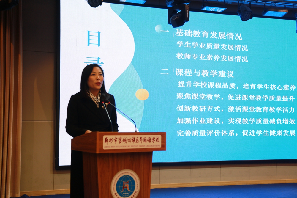 会议伊始,管城区教育教学研究中心主任陈彩红作基础教育教学质量分析报告。报告结合数据与调研,展现区域教育质量态势:高考优生、艺体升学成效显著,俄语教育成特色;中招质量三年连续提升,基础教育更趋均衡;小学常态课达标,优质课仍有提升空间。报告同时指出教学短板,并提出改进建议,明确2026年聚焦课程提质、课堂攻坚、教研赋能、作业建设、评价完善五大重点。