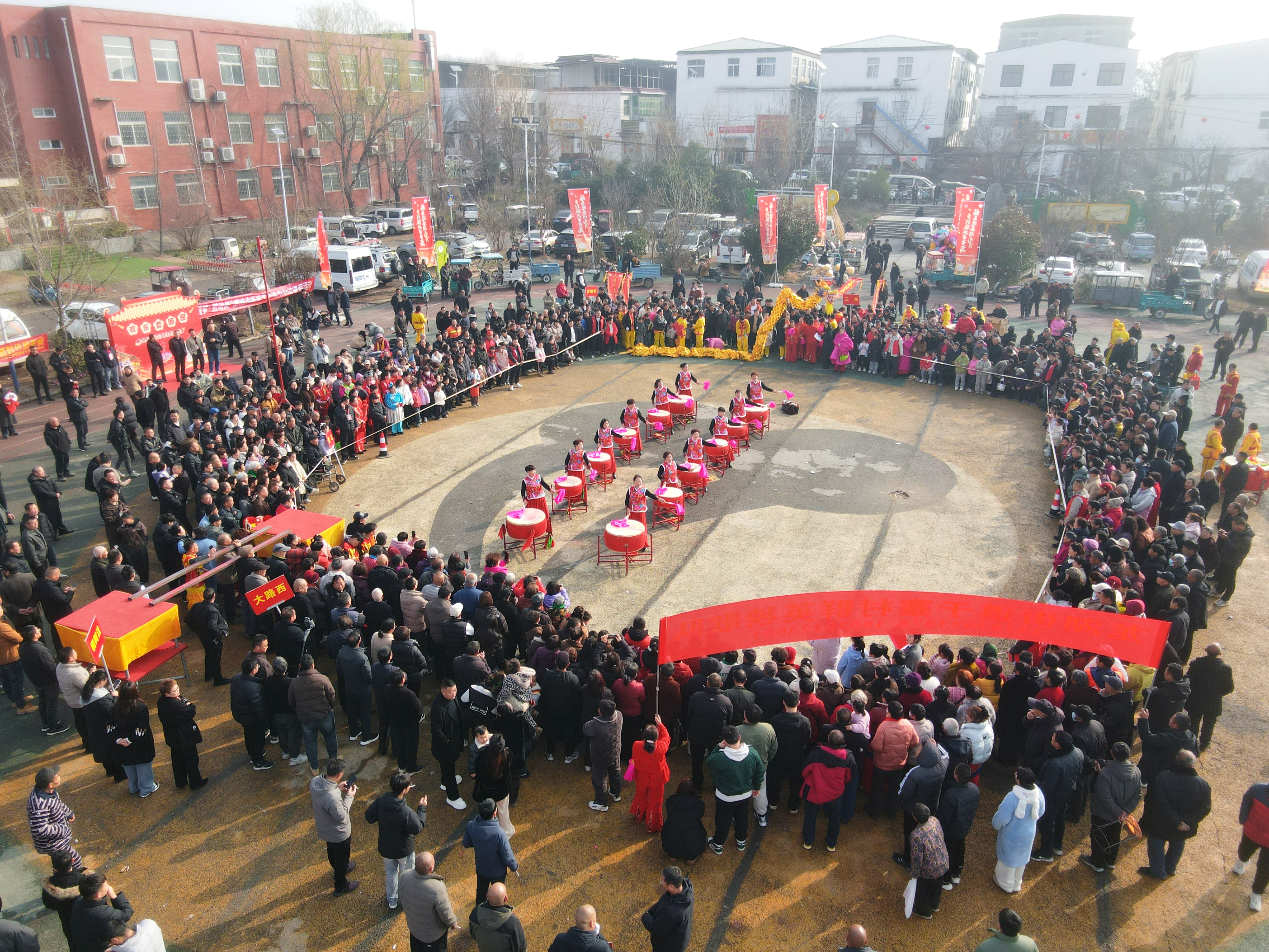上午8时30分,樱桃广场上已是锣鼓喧天、人声鼎沸。来自樱桃沟辖区的民俗表演队伍轮番登场,气势磅礴的舞龙舞狮翻腾跳跃,引得围观群众阵阵喝彩;节奏明快的盘鼓表演铿锵有力,敲出了村民们对新一年的美好期盼。广场另一侧,套圈、投壶、猜灯谜等传统游戏前排起长龙,孩子们举着刚赢来的小奖品欢呼雀跃,老人们围在一起猜谜语、话家常,笑声不断。最热闹的当属拔河和旱地划龙舟比赛,11支队伍200余人展开激烈角逐,参赛队员个个憋足了劲儿,场边的加油声、呐喊声一浪高过一浪,把节日的氛围推向了顶点。