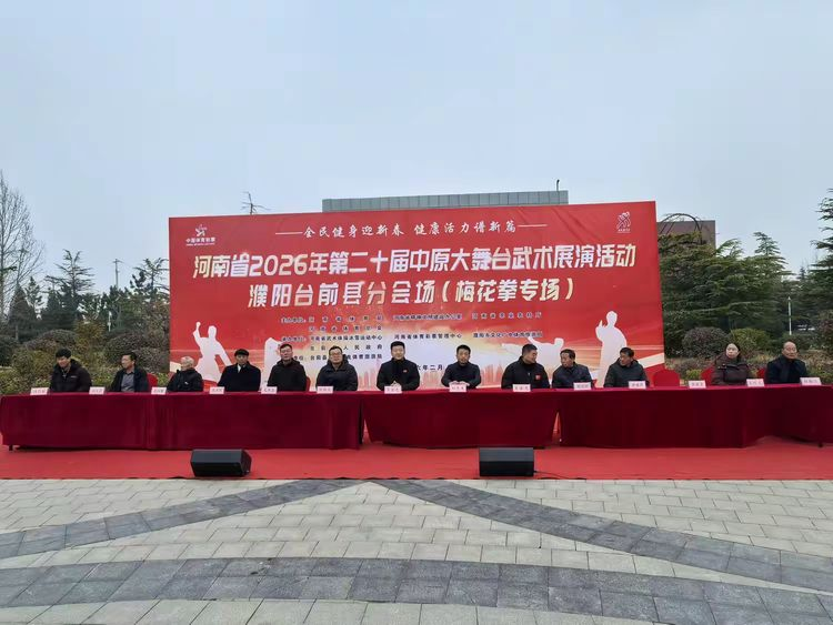 为深入贯彻全民健身国家战略,传承弘扬中华优秀传统武术文化,2月28日,河南省2026年第二十届中原大舞台武术展演活动濮阳台前分会场梅花拳专场活动在将军渡纪念馆广场精彩上演。本次活动作为2026年河南省全民健身大拜年系列活动的重要组成部分,由河南省体育局、河南省精神文化建设办公室、河南省农业农村厅、河南省体育总会主办;河南省武术体操冰雪运动中心、河南省体育彩票管理中心、濮阳市文化广电体育旅游局、台前县人民政府承办;台前县文化广电体育旅游局执行。县文化广电体育旅游局及濮阳市武术协会相关领导出席了开幕式。