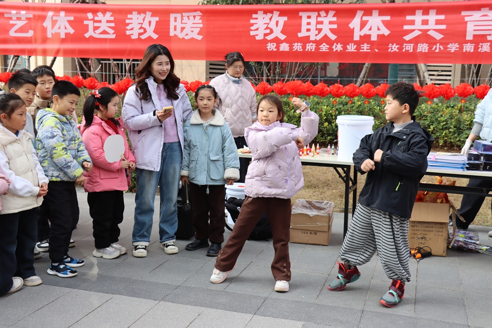 3月3日,郑州的天气好像算准了一样,在元宵佳节这一天惠风和畅,春意融融。当天下午,郑州市二七区汝河路小学南溪路校区携手家长志愿者走进鑫苑府社区,以 “骐骥驰骋启新程・家校同心庆元宵” 为主题开展教联体家校社共育活动,将元宵传统民俗与艺体教育深度融合,精准纾解孩子们的开学焦虑,让团圆佳节更添育人温度。