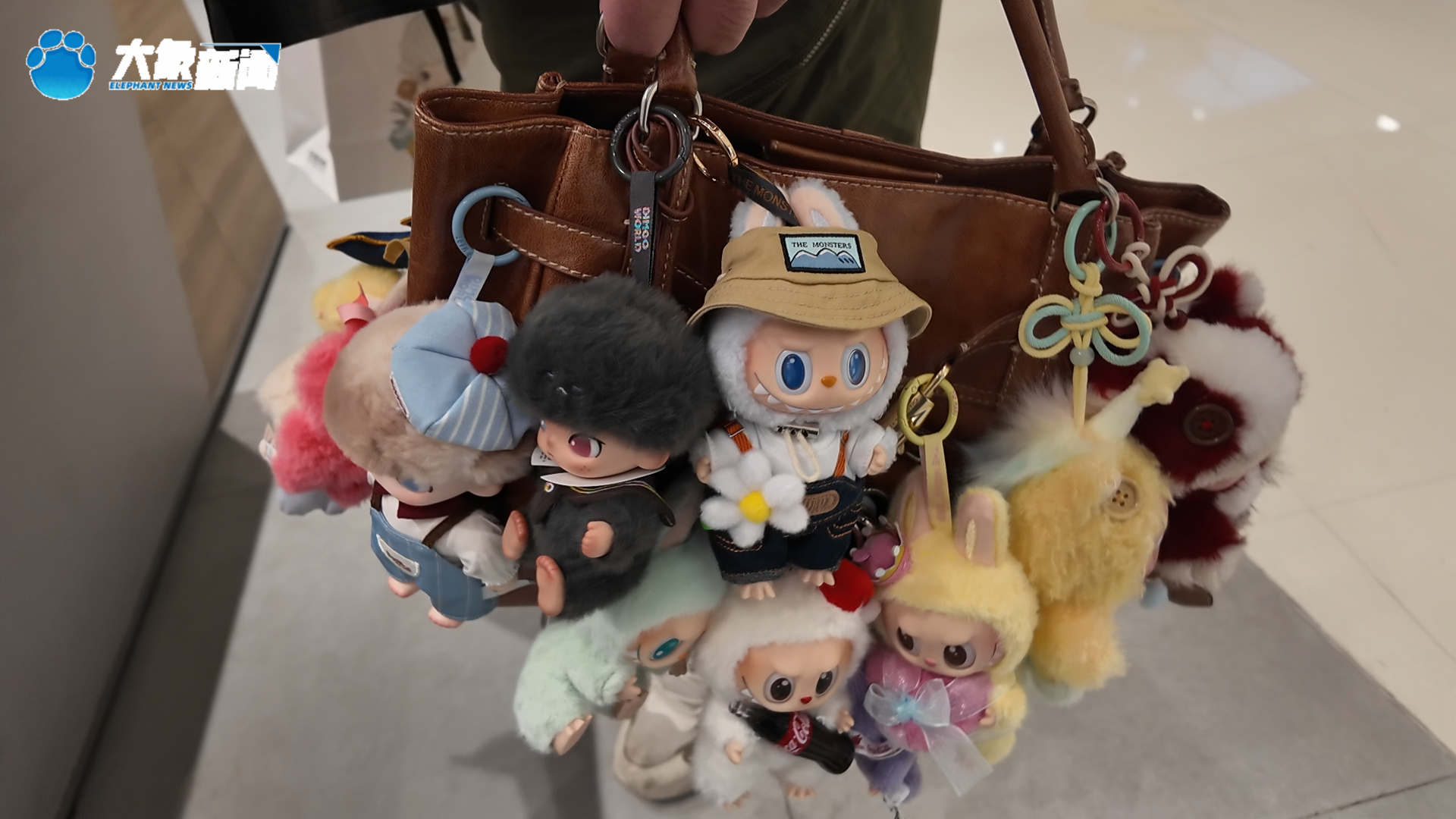 3月3日,河南郑州国贸360,一对情侣逛泡泡玛特店,女子包上挂满了各种款式泡泡玛特产品,引来多名顾客拍照,一位顾客称“她太有实力了”。她告诉记者,有的产品比较难买,好多粉丝看到后都想要走。