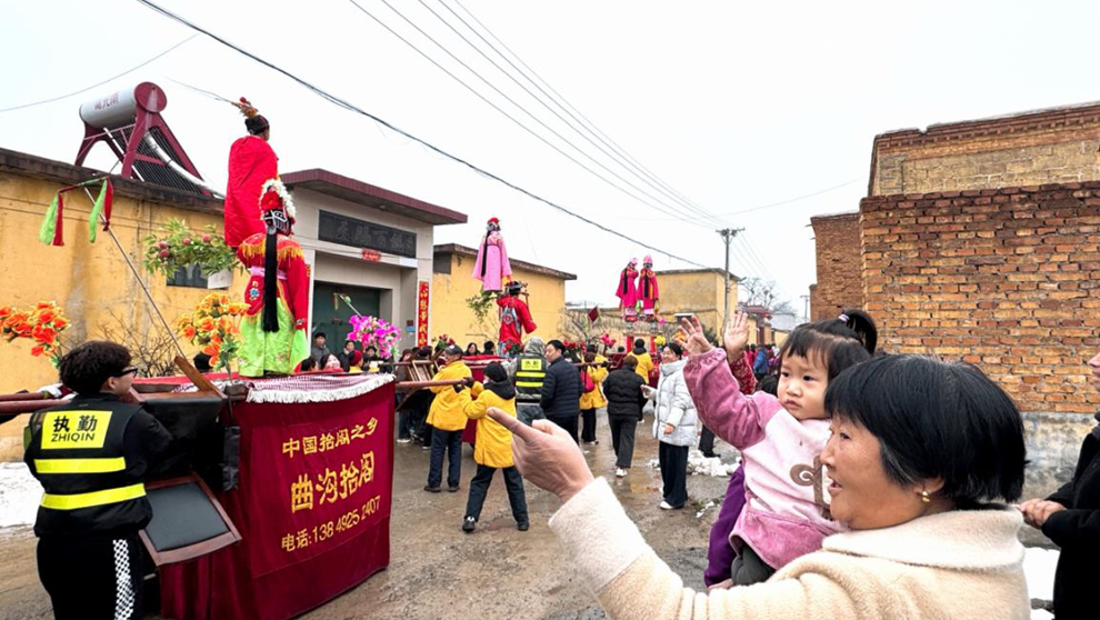 随着铿锵有力的战鼓擂响,活动拉开序幕。12架精美抬阁依次亮相,造型精巧、装扮别致,演员扮相生动传神,将传统故事与民俗风情完美融合,尽显非遗文化的独特魅力,引得观众连连称赞。威武灵动的舞狮腾跃翻转、神气十足,时而憨态可掬,时而气势昂扬,把热闹氛围推向高潮;欢快的秧歌队身着彩衣,舞步轻盈、热情奔放,扭出了新时代农民的精气神,展现出水浴村群众昂扬向上、团结奋进的精神风貌。