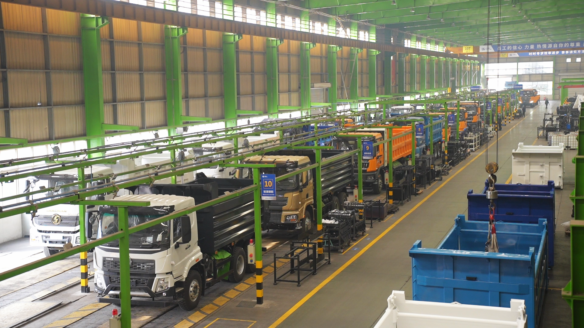 走进骏通生产厂区,处处是热火朝天的奋斗图景。下料车间智能切割机高速运转,焊接车间焊花飞溅,老师傅精雕细琢、年轻技工熟练操作智能设备,总装车间流水线默契协作,各环节高效衔接,一辆辆专用车接连下线,即将奔赴全国建设一线,尽显实干兴企的奋进姿态。