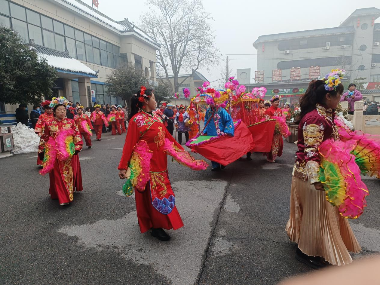 当日上午9时30分,社火表演正式开始,伴随着铿锵有力的锣鼓声,各支队伍依次登场、尽展风采。王马庄村率先开场,秧歌、舞蹈与锣鼓相映成趣,气势恢宏;东头村带来的旱船、秧歌、锣鼓等表演原汁原味、妙趣横生;石碑头村红歌队歌声嘹亮,唤起现场观众的深深共鸣;西街村的挑轿、秧歌、旱船等节目引人入胜;贾家、南街、郭家岗、孙圣沟、东杨邑等村的队伍也各展所长,秧歌舞步轻盈,锣鼓节奏铿锵,赢得观众阵阵掌声。