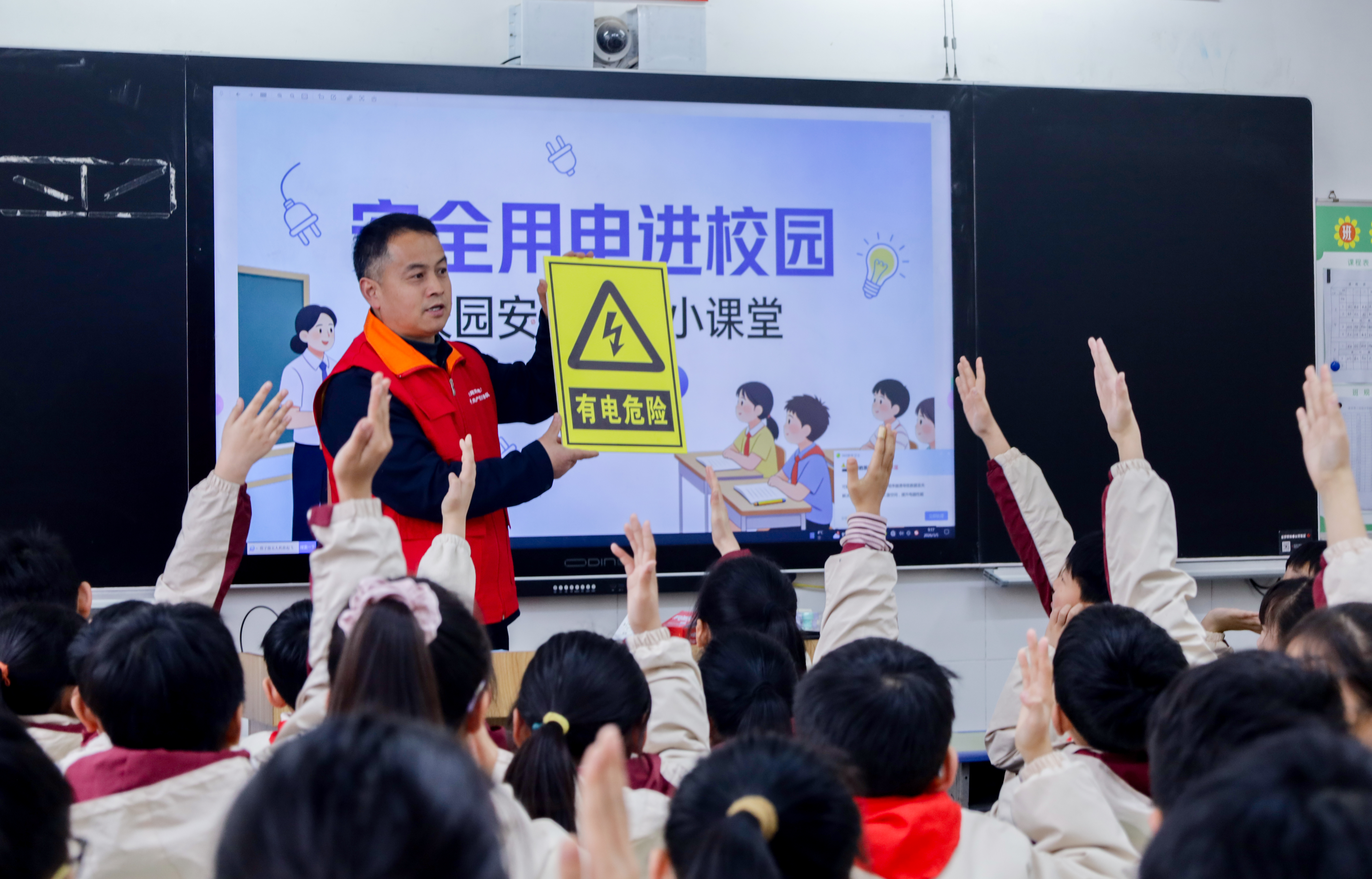 最受孩子们欢迎的有奖问答环节将气氛推向高潮。“电老师”抛出一个个贴近生活的用电安全问题,同学们纷纷高举小手、踊跃抢答,在热烈有序的互动中,不仅检验了孩子们的学习成果,更激发了大家探索科学、学习新知的浓厚兴趣。