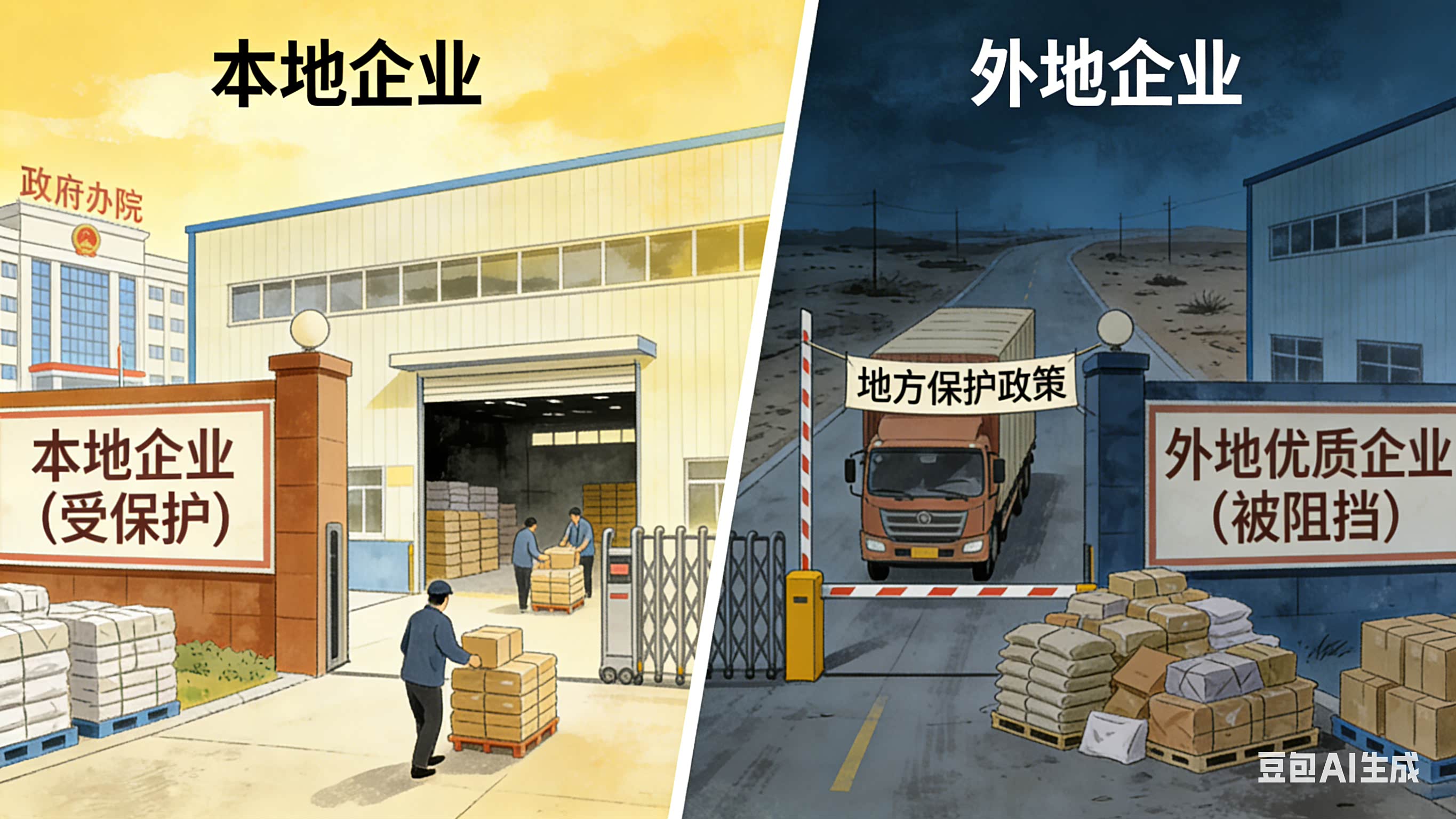 地方这么干有他们的理由:财政压力大。如果外地物美价廉的产品冲进来,本地企业扛不住,日子怎么过?所以大家本能地“护食”。但这就会造成“劣币驱逐良币”的恶果。