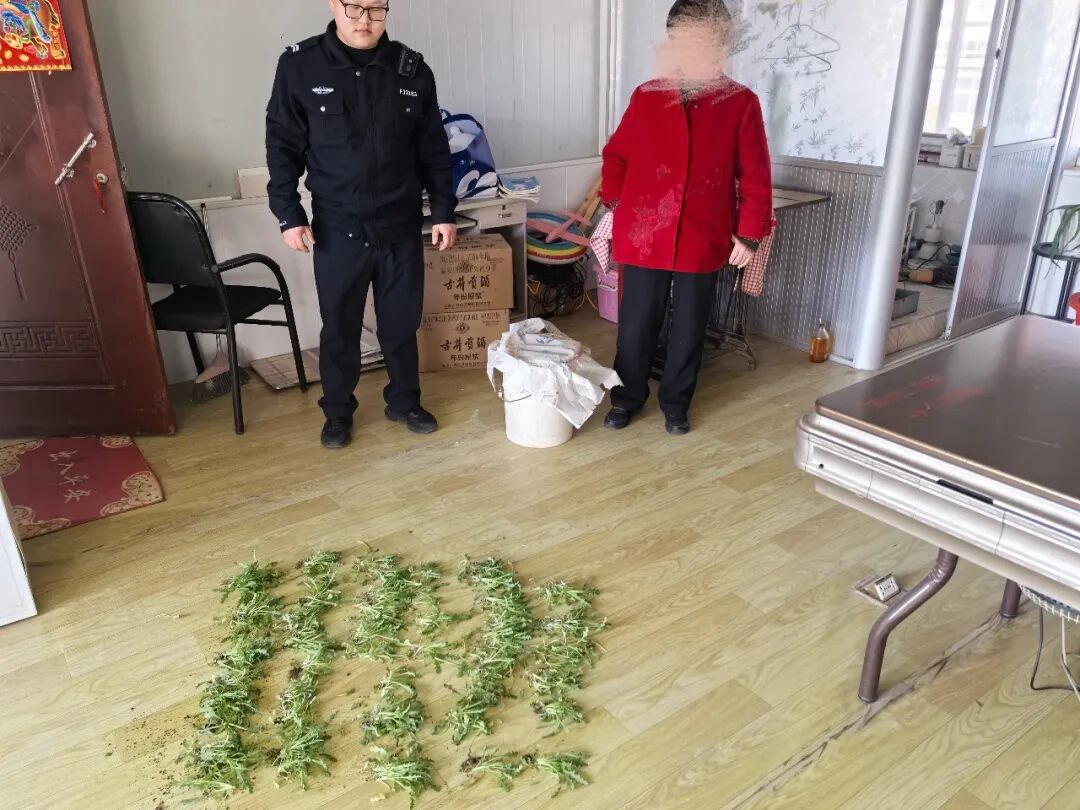 民警根据上级推送线索精准核查,依法查处赤城街道居民漆某、涂某非法种植罂粟幼苗案,当场铲除涉案植株,并对二人作出行政处罚。民警现场以案释法,向周边群众讲解非法种植的法律后果,切实达到查处一案、警示一片的良好效果。