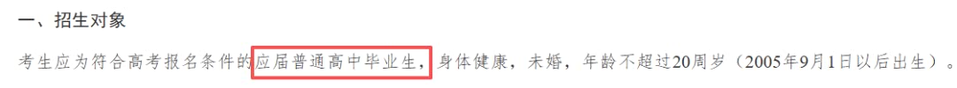 海军军医大学2025年无军籍地方本科生招生简章中明确指出:只招收普通高中应届毕业生。