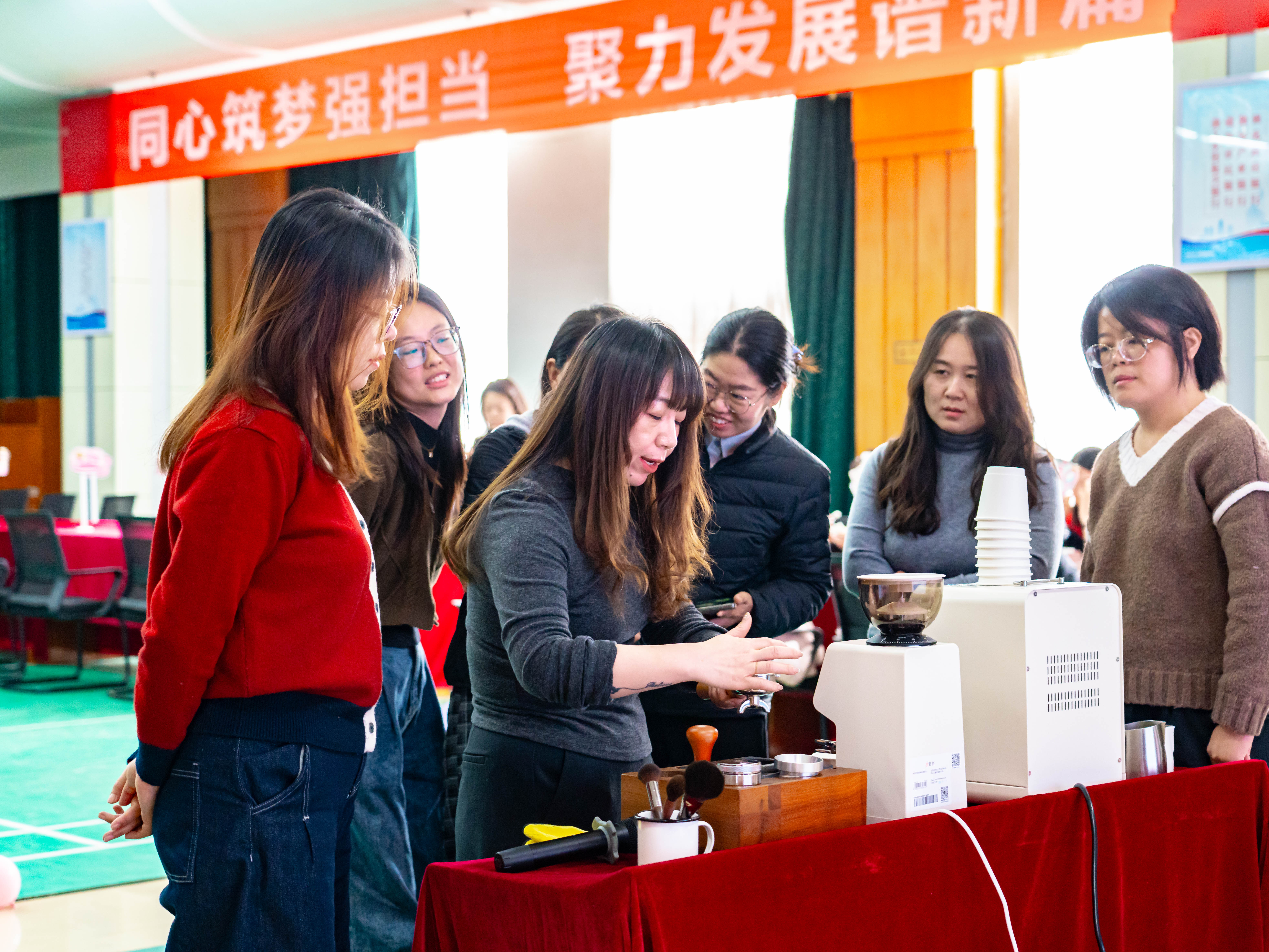 在场的女性同胞们兴致盎然,纷纷动手尝试,从研磨咖啡豆、控制水温,到调配奶泡、装饰杯面,一步步沉浸式感受咖啡制作的魅力。大家捧着自己亲手制作的咖啡,细细品鉴醇香风味,互相交流心得感受,在浓郁的咖啡香气中,卸下工作的疲惫,享受这份独属于春日与节日的慢时光,现场氛围温馨又雅致。