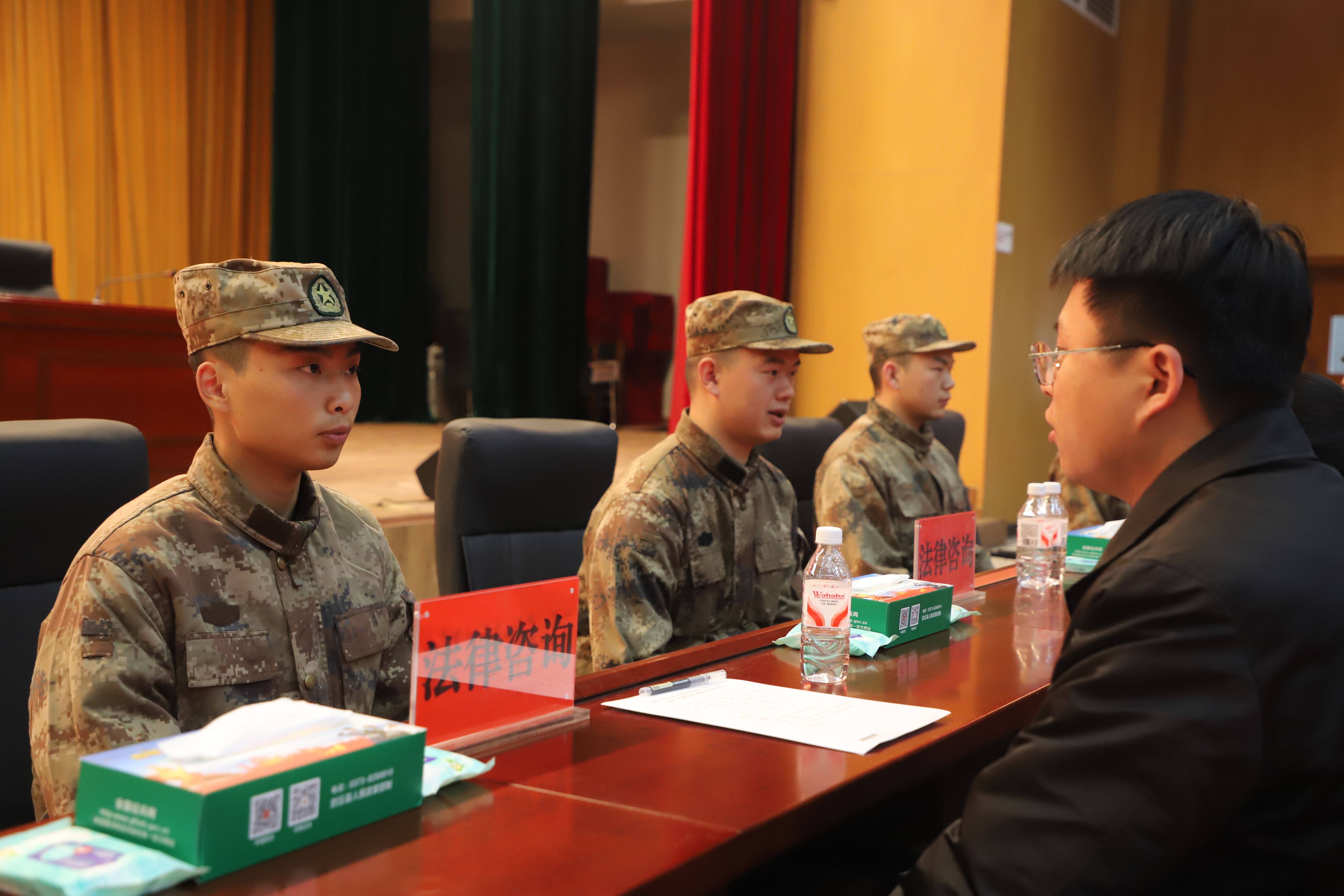 活动现场,来自军地的10多名资深法官、检察官为预定新兵解读涉军法律法规,发放法律服务手册,百余名新兵在主题横幅上签名承诺,以法治信仰筑牢从军根基。