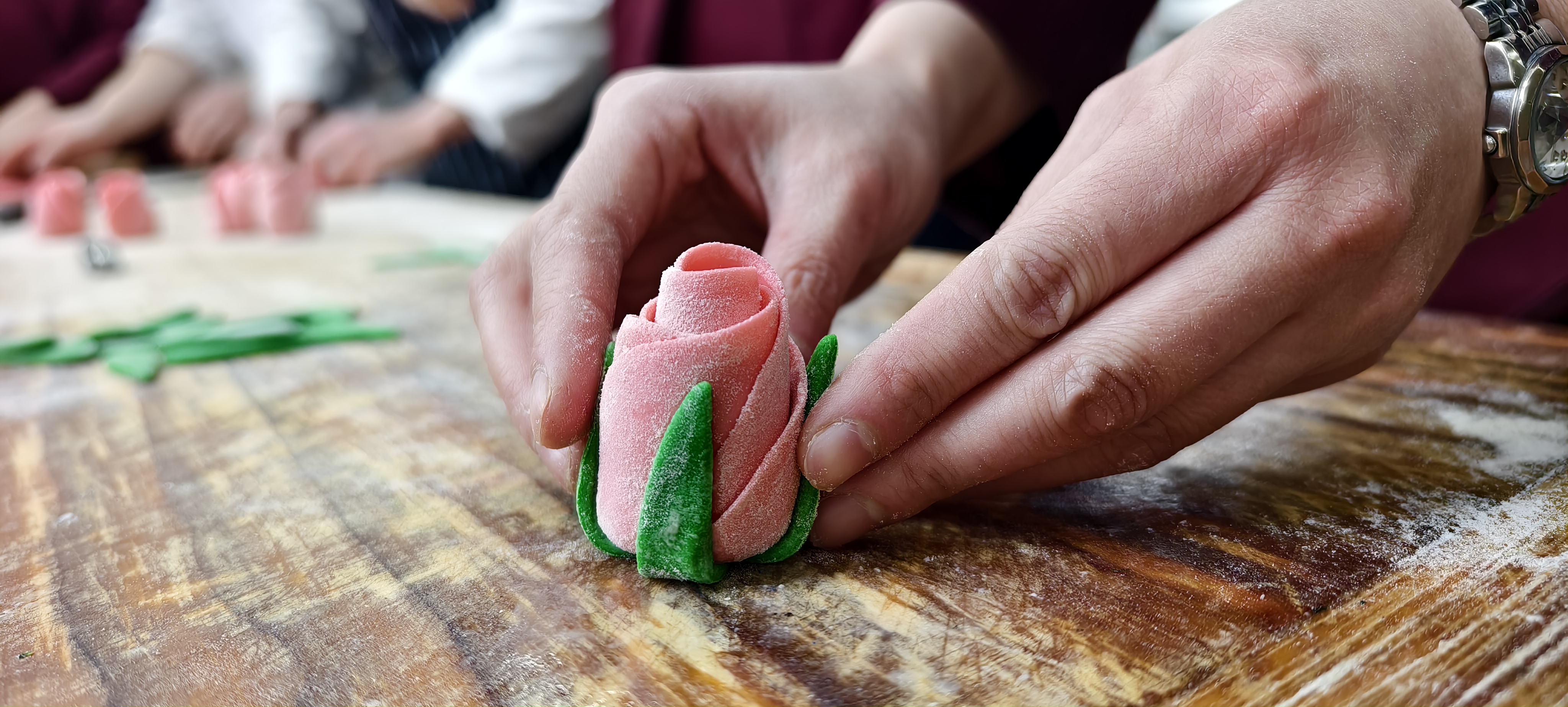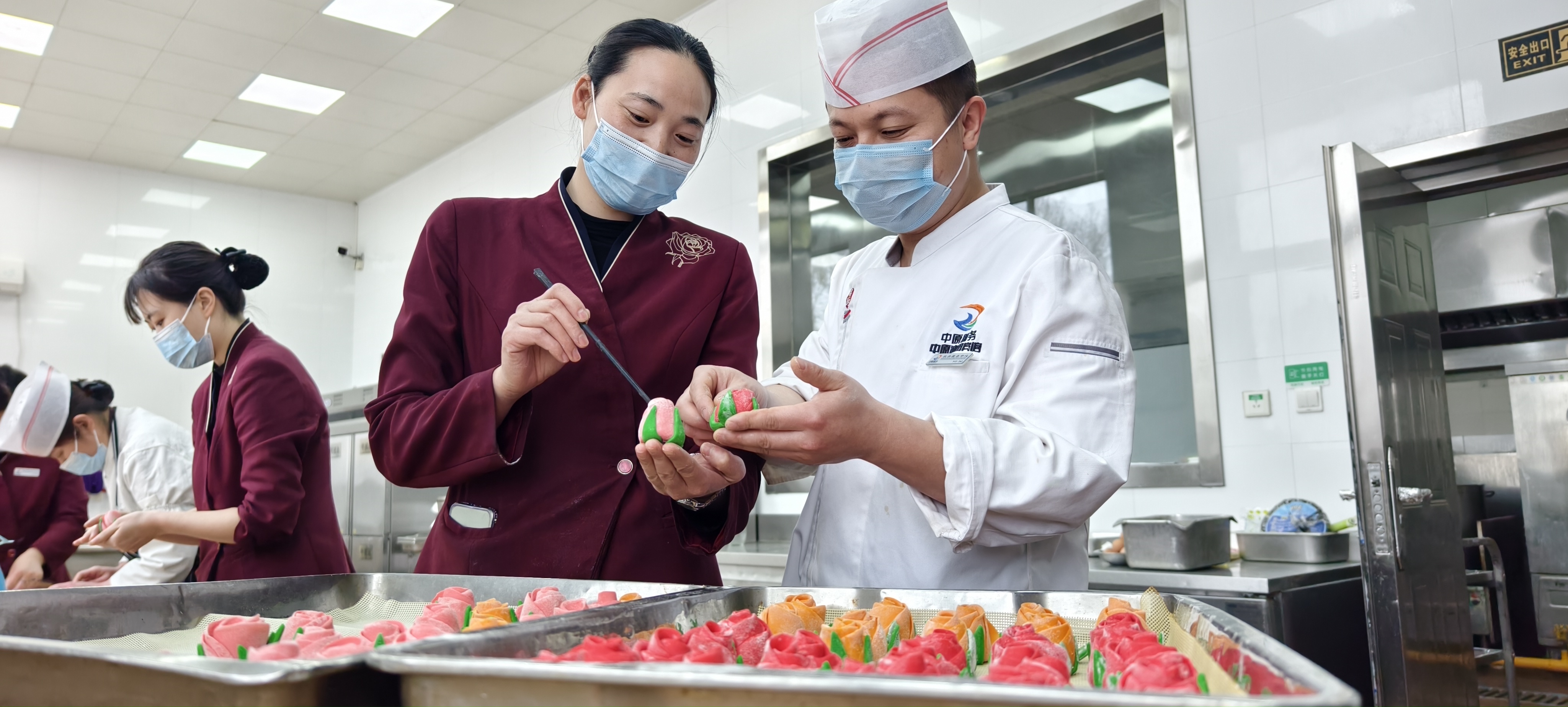 活动前期,职工餐厅精心制定方案,将节日氛围与餐饮服务深度融合,重点研发推出颜值与美味兼具的玫瑰花馒头。3月7日下午,餐厅组织骨干厨师开展玫瑰花面点设计与制作专项实训,从面团配比到造型雕琢,厨师们精益求精,确保每一份面点都成为传递关爱的暖心载体。