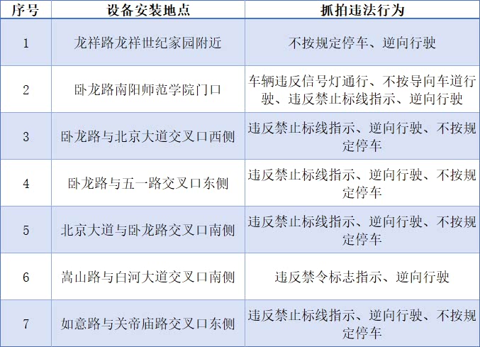 3月10日,记者从南阳市公安局交通管理支队获悉,为规范道路交通秩序、预防减少交通事故,依据相关法律法规,南阳交警将在部分路口路段新增交通技术监控设备,对交通违法行为抓拍取证并依法处罚。该批设备公示期为2026年3月11日至3月17日,公示期满后,2026年3月18日正式启用。