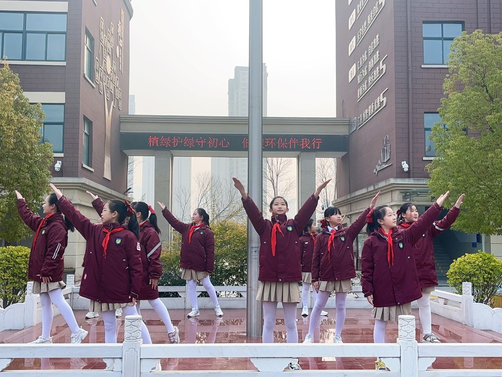 随后,各年级队员代表们带来了精彩的节目,孩子们将植树节主题融入艺术表达,通过力量与柔美的转换,不仅传递出“守护自然,绿润家园”的青春愿景,更彰显了优胜学子并肩前行、共筑绿色的向心力。