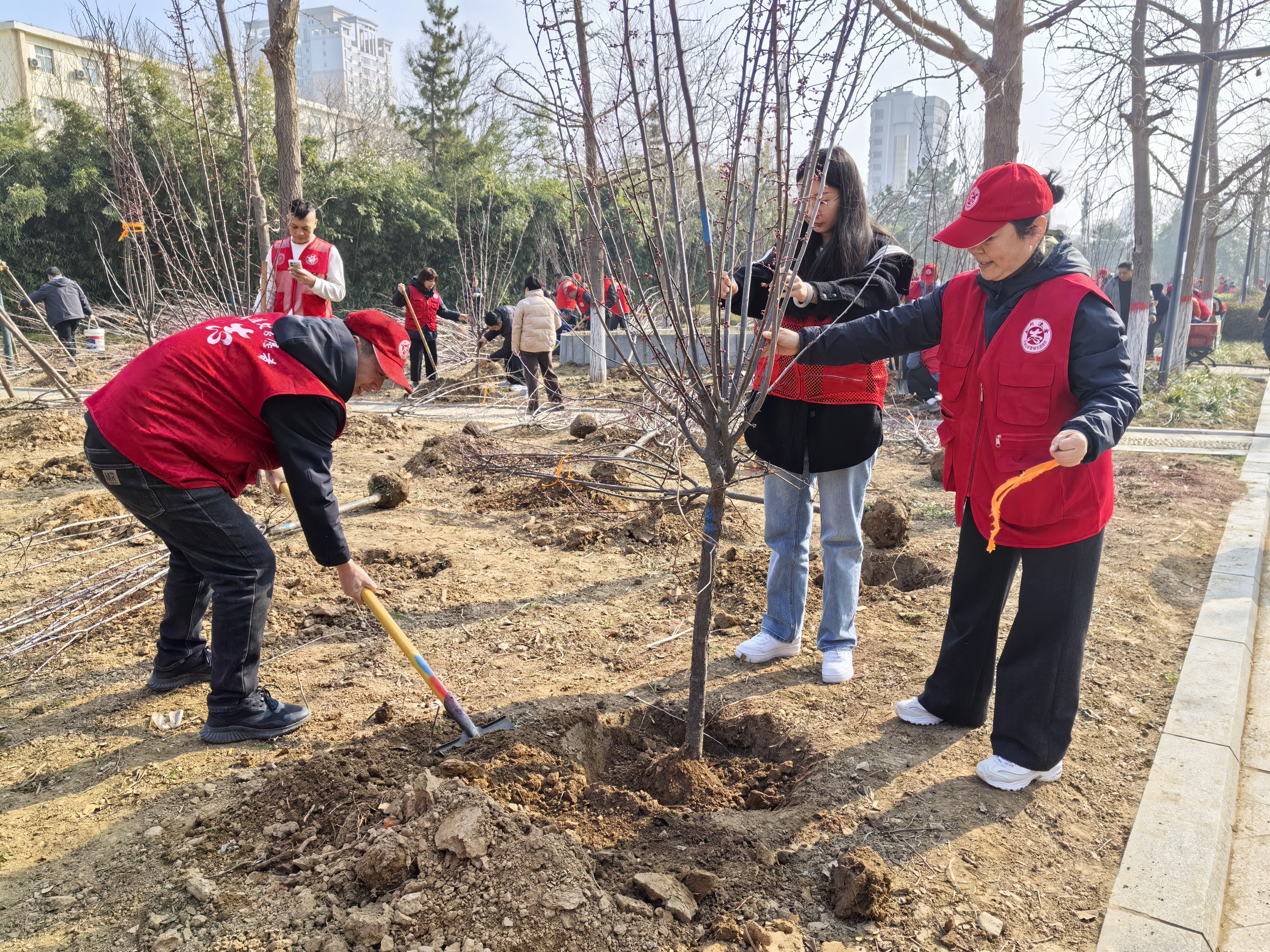 春风拂岸,新绿初绽。在第48个植树节到来之际,3月12日上午,来自郑州市城市管理局机关、郑州市数字化城市运行中心、郑州市城区河道事务中心的百余名干部职工,齐聚东风渠滨河公园,联合开展主题为“手牵手植树造林 心连心共建美好”的义务植树活动。全体人员以躬身实干的实际行动,为城市河道增绿增色,用一抹抹新绿筑牢城市河渠生态屏障。