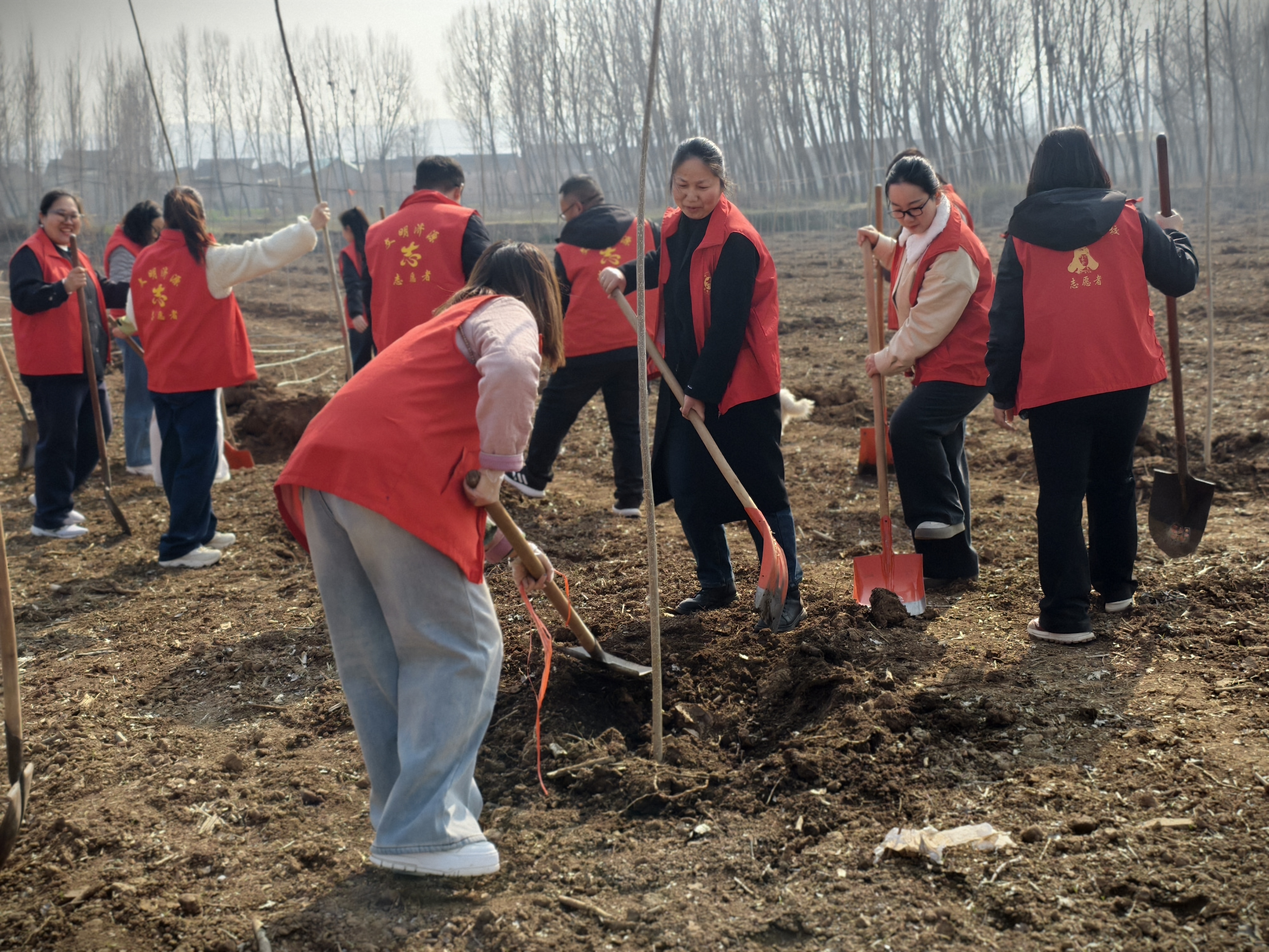 春回大地万物苏,植树添绿正当时。3月12日下午,济源市济水西关学校组织党员教师赴承留镇孔庄村开展植树活动,以“党建红”引领“生态绿”,用实际行动践行“绿水青山就是金山银山”的绿色发展理念,助推乡村振兴。