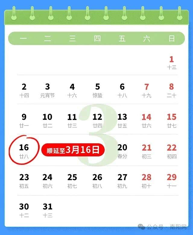 2026年3月申报纳税期限顺延至3月16日,提醒大家合理安排申报时间,错峰完成申报!