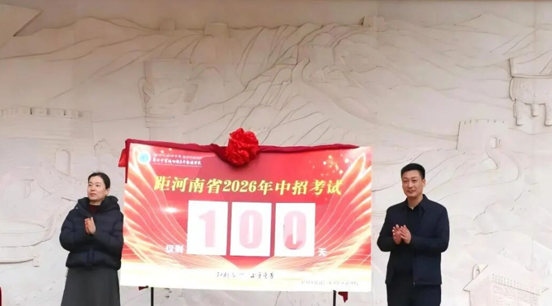 在热烈的掌声中,校领导为“中考百日倒计时”牌庄严揭幕。红绸缓缓滑落,醒目的“100”字样映入眼帘,全场响起雷鸣般的掌声。这一刻,倒计时牌不仅是时间的刻度,更是梦想的倒计时,宣告着百日冲刺正式启航,激励着每一位学子珍惜时光、奋力拼搏。