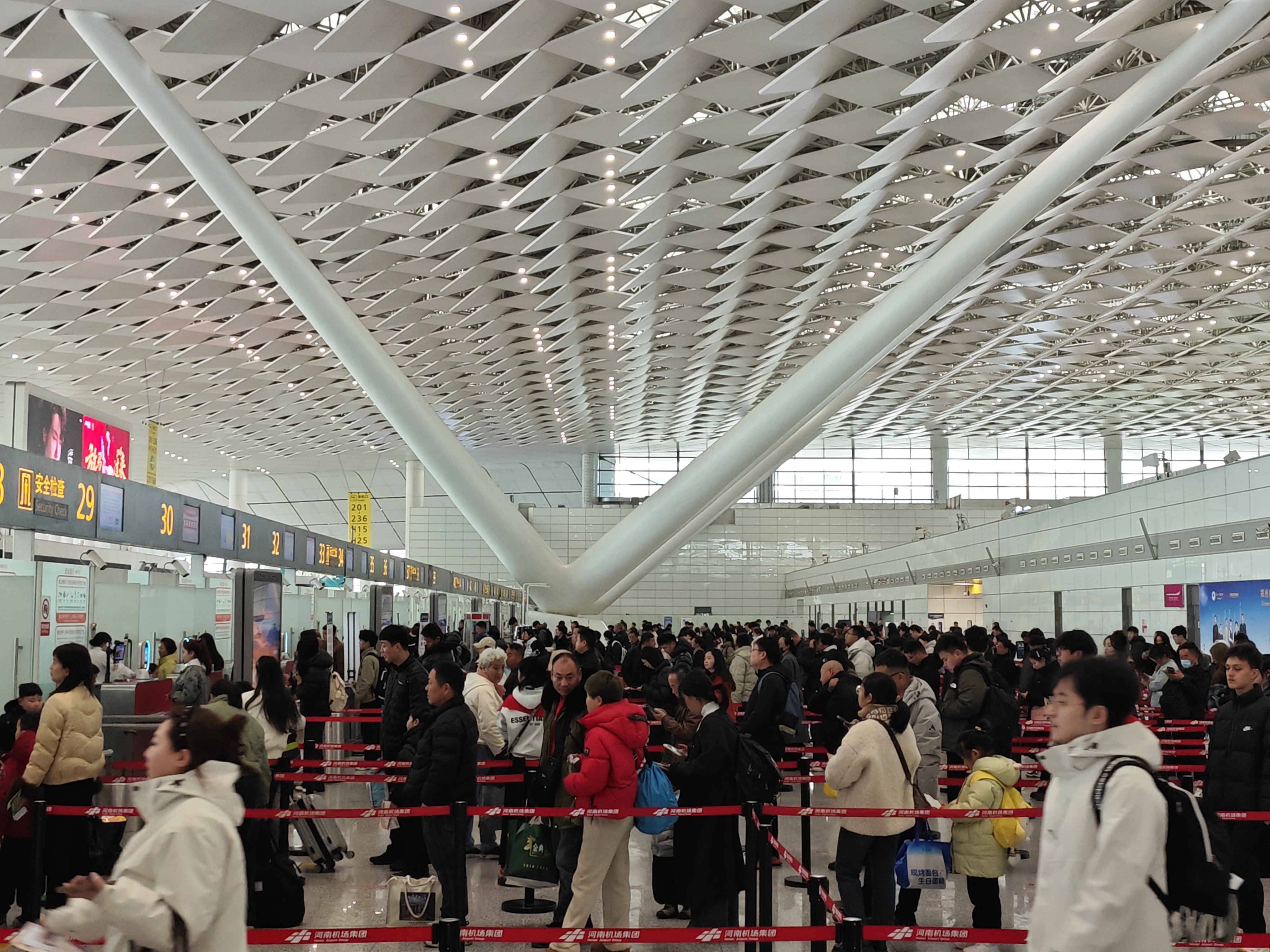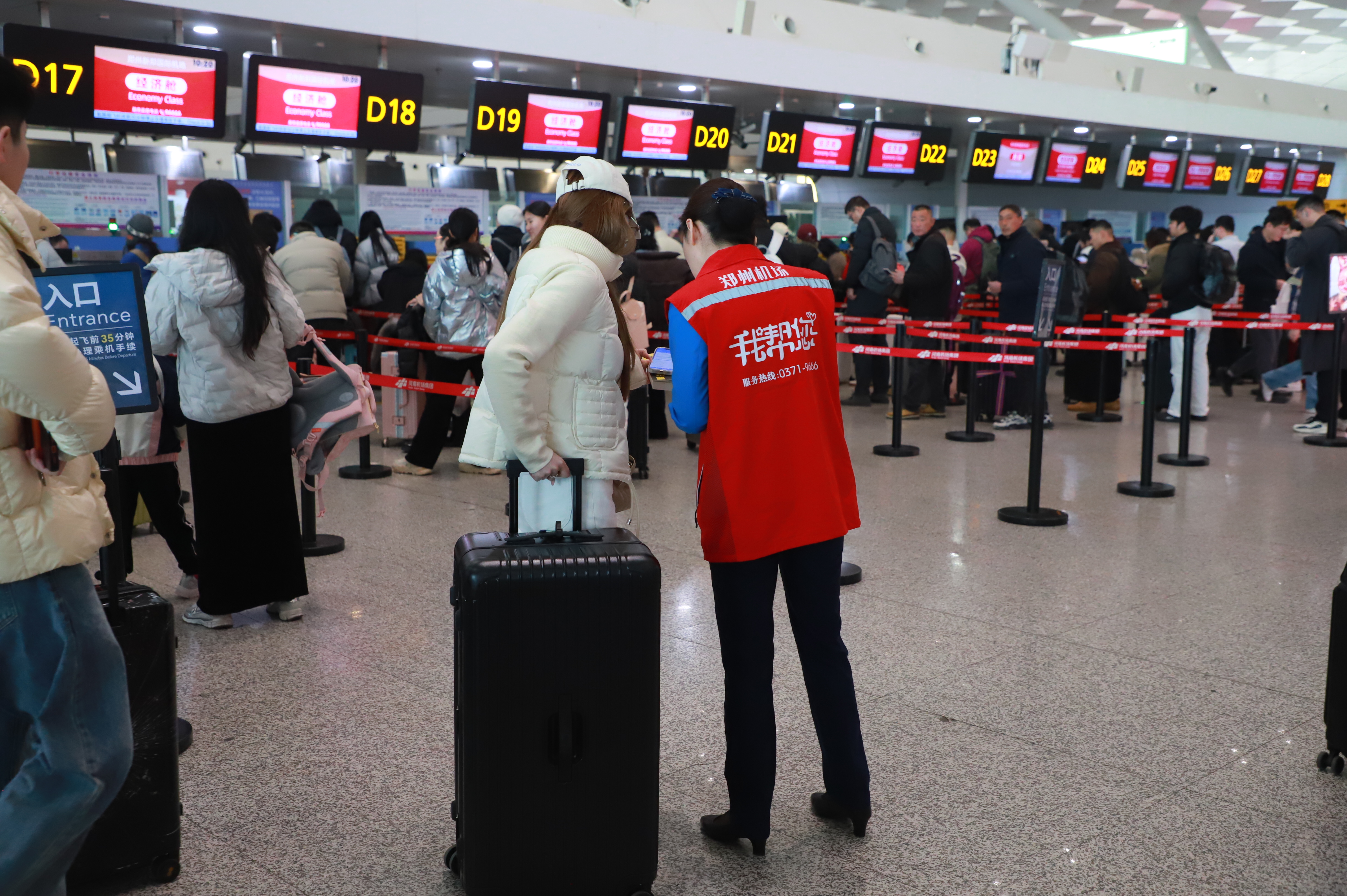 春运40天,郑州机场客流更是迎来历史性时刻:日均保障旅客约9.3万人次,2月20日(农历正月初四),单日旅客吞吐量历史首次突破10万人次大关,一举打破1997年通航以来的单日客流纪录,由此一路高位运行,自2月20日至2月27日,连续8天保持单日10万人次以上,成为郑州机场发展史上里程碑式突破。