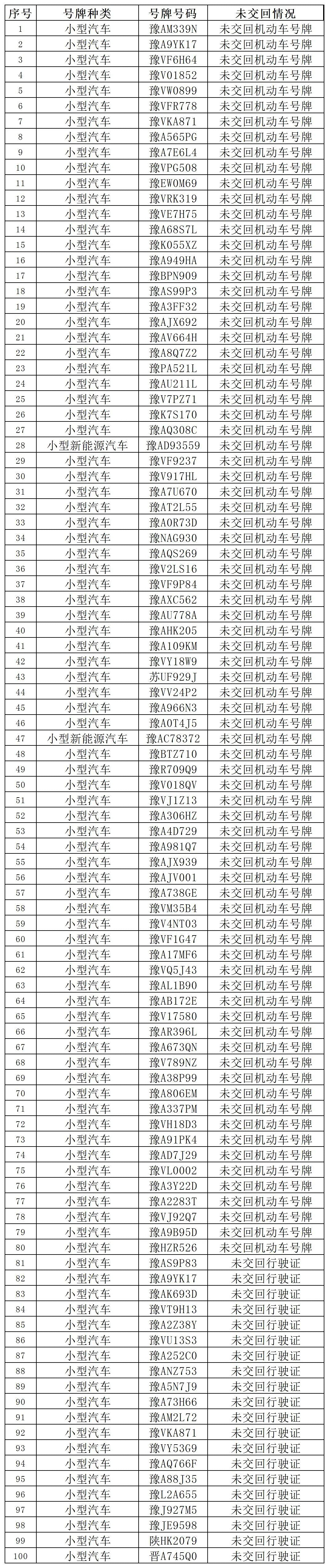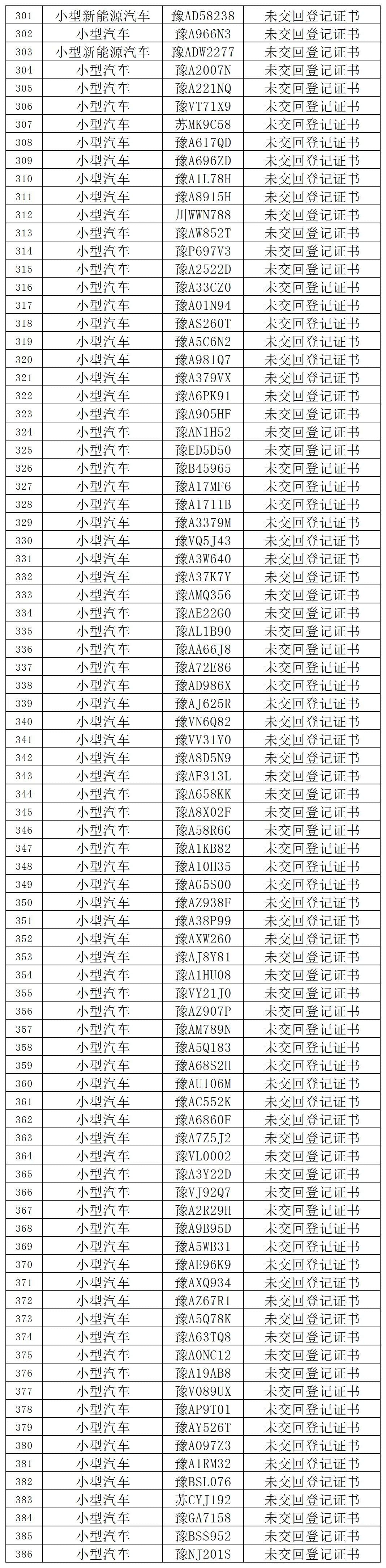 现对以下386辆机动车予以公告,牌证自公告发布之日起作废。