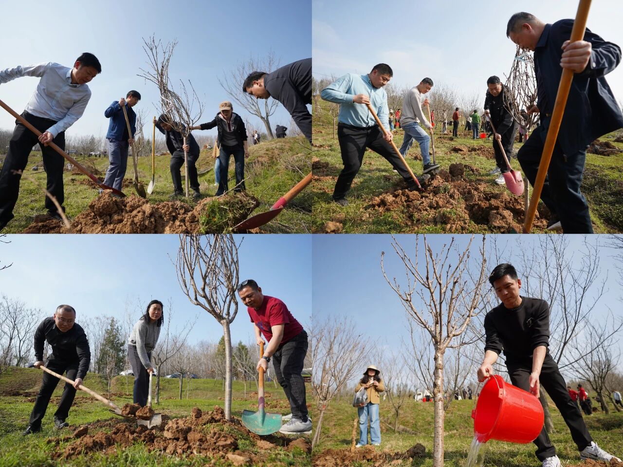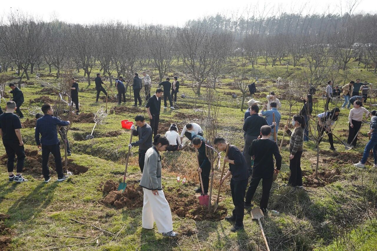 活动现场,大家分工协作、密切配合,挥锹铲土、扶苗填坑、提水浇灌,共同栽植樱花等苗木1500余株,为初春的北湖增添了勃勃生机与盎然绿意。