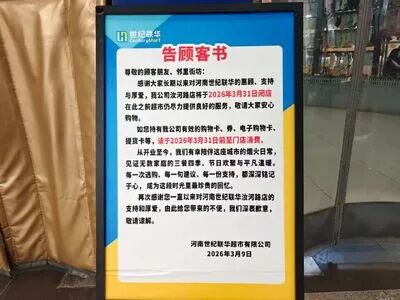 最近,网传河南世纪联华超市有限公司发布《告客户书》,称郑州汝河路店、橄榄城店将于3月31日闭店。记者13日走访发现,两家门店入口处均摆放着闭店通告,这也意味着陪伴市民24年的“世纪联华”将彻底告别郑州。
