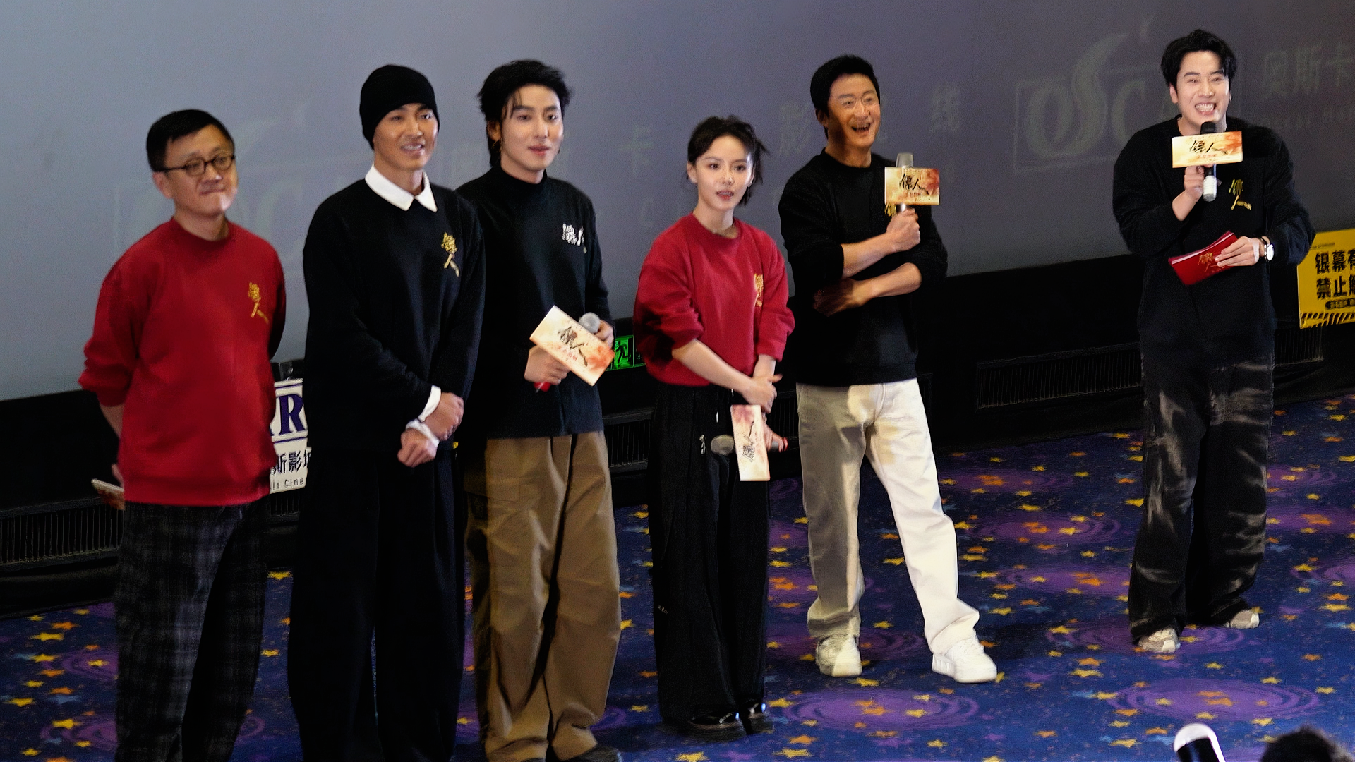 3月14日,漫改电影《镖人:风起大漠》(以下简称《镖人》)的主创团队亮相河南郑州奥斯卡航海路丹尼斯影城,编剧俞白眉、监制兼领衔主演的吴京、主演白那日苏、梁壁荧、李嘉辉与影迷热情互动。