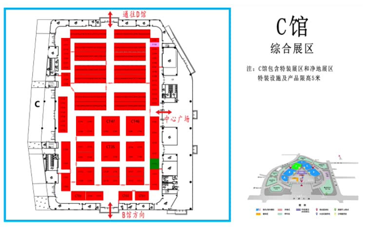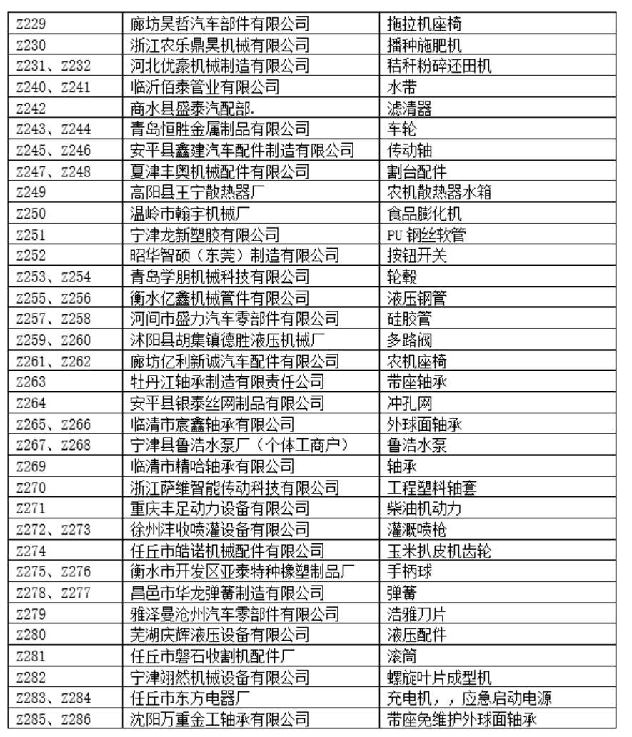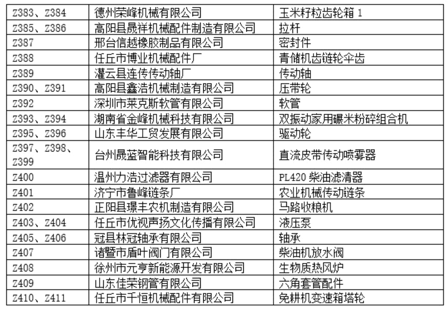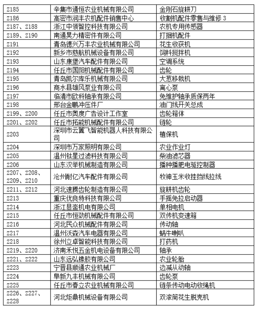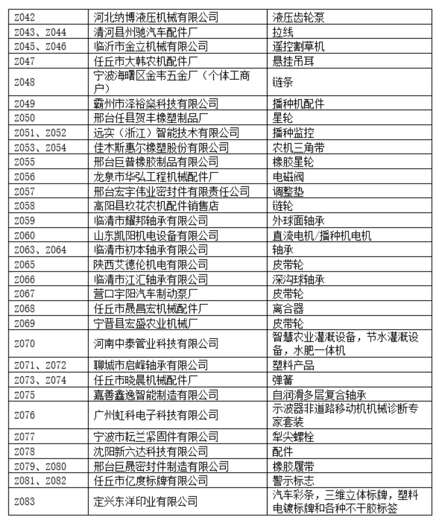 C展厅包含室内特装区和净地展区,特装设施及产品限高5米,设置特装展位49个,净地展位133个,展览面积8200平,展示企业91家,展示企业包括河北农哈哈、河南德昌、石家庄天人、锐牛股份、新乡立广、南通卓越、河北黑一等整机及零部件企业,展示产品包括:自走式花生捡拾收获机、移动粮食烘干机、玉米收获专用割台、传动胶带、弹簧弹齿、喷灌机、播种机、割草机等产品。