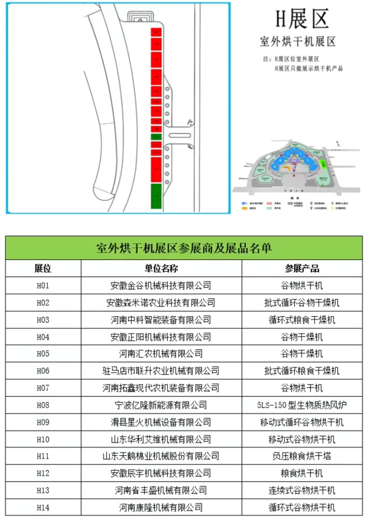 展会共设 A、B、C、D、E、F、Z 七大展区及室外烘干设备专区,涵盖特装、标准、净地及室外烘干设备展位,集中展示高效智能农业机械最新成果。
