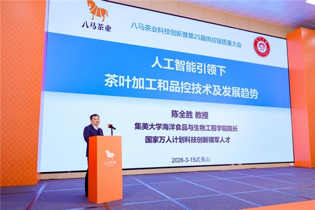 武夷山市人民政府党组成员、副市长邱敏在致辞中表示,武夷山始终以科技创新为核心引擎,推动茶产业发展。八马茶业自 2020 年落地以来,以 “当年落地、当年见效、当年纳税夺冠” 书写政企携手佳话,现已连续 6 年蝉联武夷山茶企纳税第一,是政企协同兴茶的典范。当地政府将持续打造优质创新生态,全力支持八马茶业在科创与 “三茶” 统筹实践中勇立潮头。