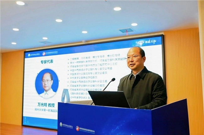 郑州大学第一附属医院万光明教授 在致辞中指出,此次项目落地河南是我省基层眼科发展的宝贵机遇。“筛-诊-治-管”一体化模式及免费慢病管理平台可补齐基层短板,项目以开封为支点能辐射豫东,既能让更多基层医师接受规范培训,也能让河南群众在家门口享受优质诊疗服务,他强调基层眼科需全省协同发力,与同仁共勉三点要求,坚信各方合力能推动项目在河南落地生根,为建设健康中原贡献力量。