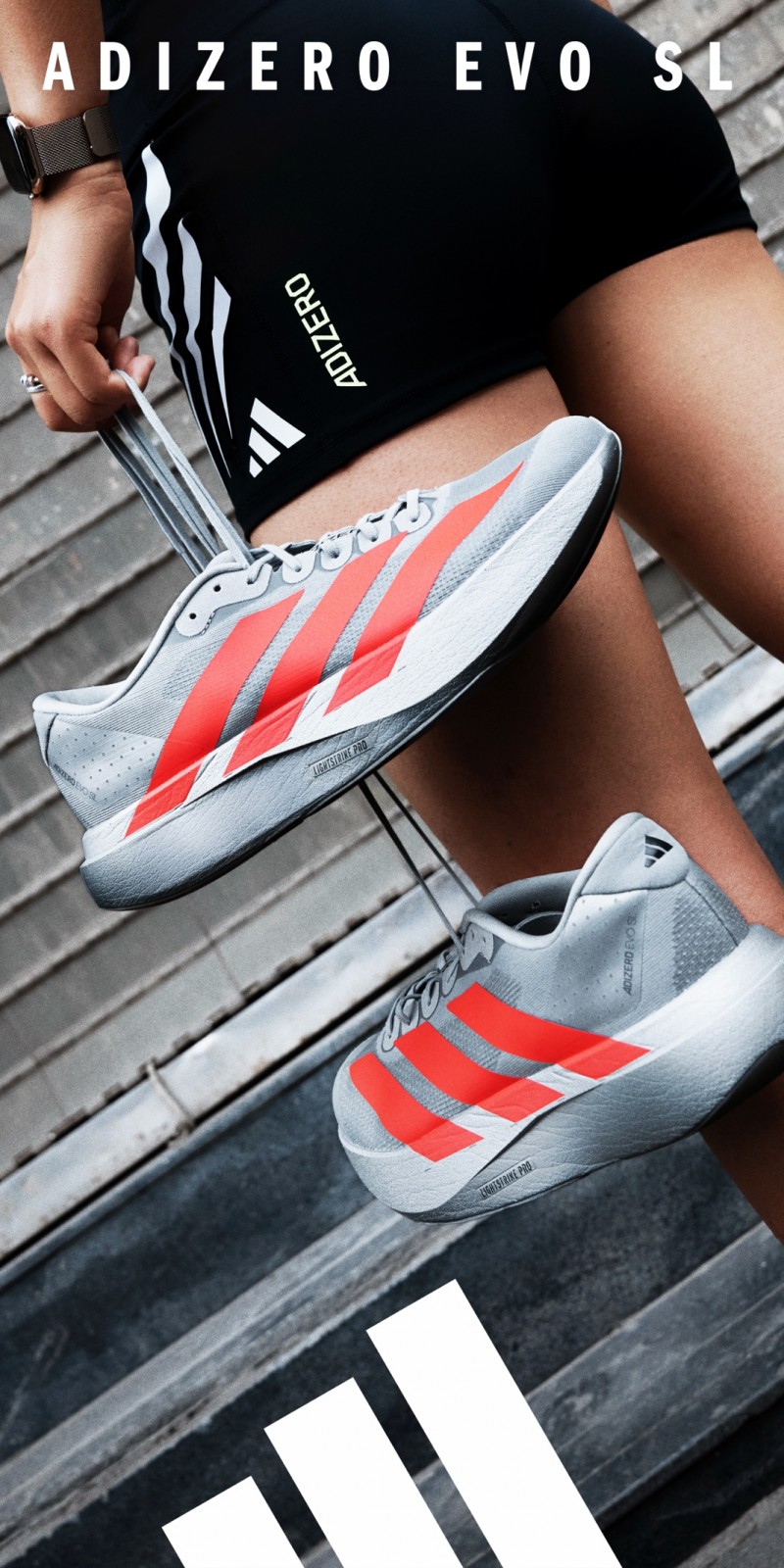 ADIZERO EVO SL首次亮相于2024年9月的柏林马拉松,一同亮相的还有ADIZERO ADIOS PRO 4——后者定位“竞速旗舰”,凭借由ENERGYRODS 2.0仿生劲爪碳柱、LIGHTSTRIKE PRO闪击泡棉组合的业内顶流中底科技以及超级轻量、柔软包裹等特点,收获大量好评;前者无碳板设计,鞋面也仅采用简约的工程网眼材质,最大亮点在于搭载整块竞速级LIGHTSTRIKE PRO泡绵中底,彼时并未立刻引发过多关注。
