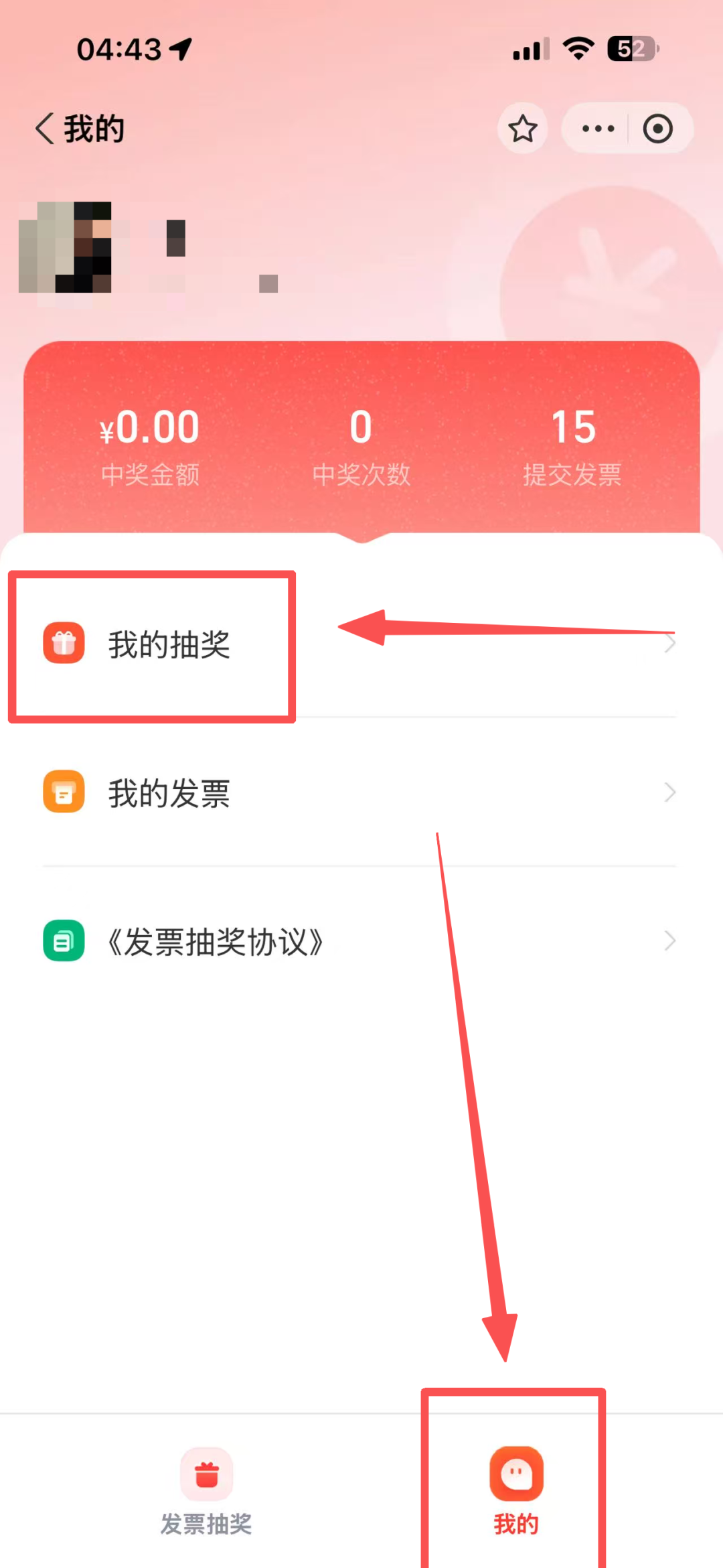 在抽奖界面先点击【我的】,再点击【我的抽奖】进入即可查看