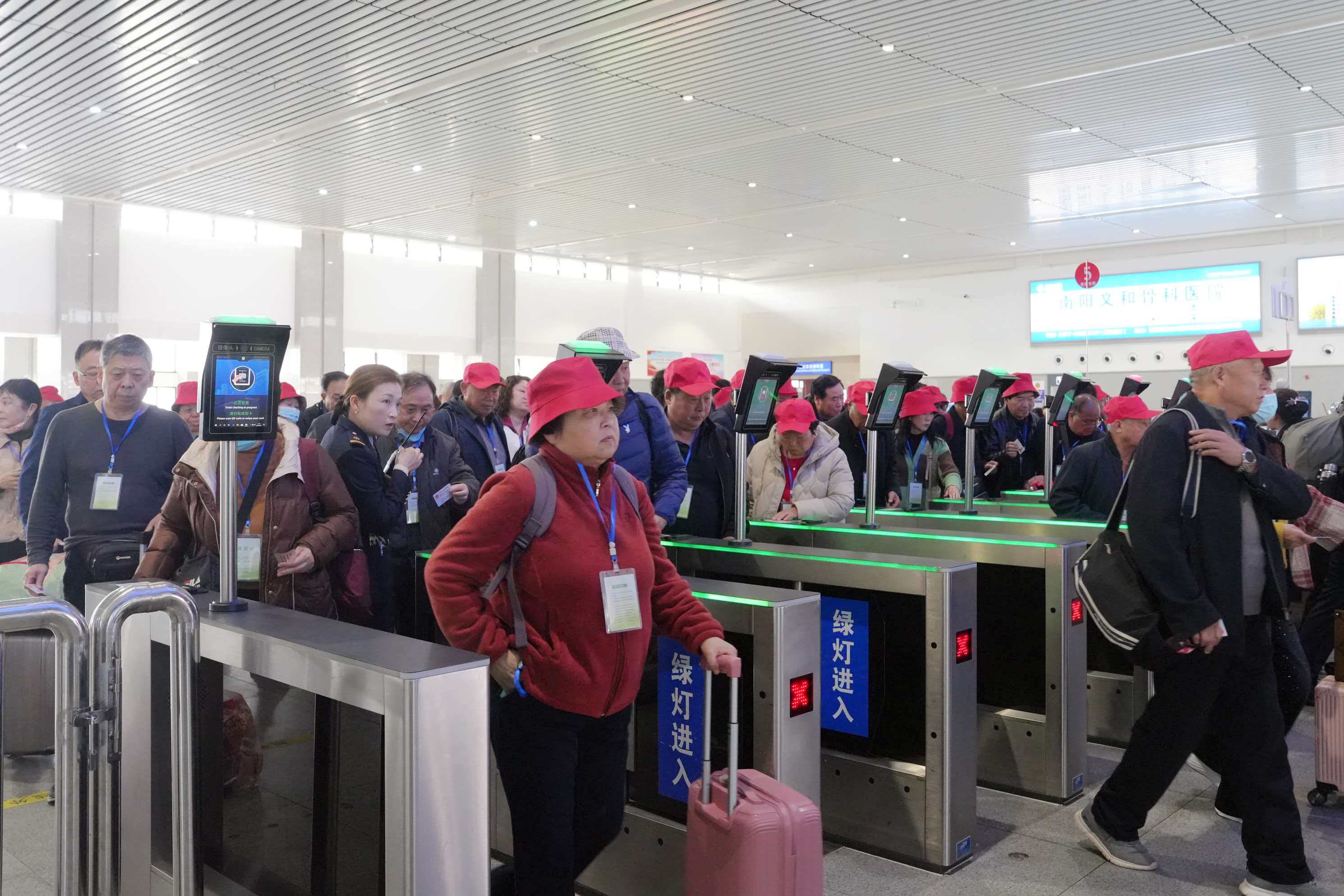 “为方便出行,车站及时开辟绿色通道,设立候车专区、安排专人引导乘车,还在服务台准备了免费针线包、轮椅、急救药箱等备品,积极为游客出行营造良好环境。”国铁集团郑州局南阳站副站长孙晶晶介绍。