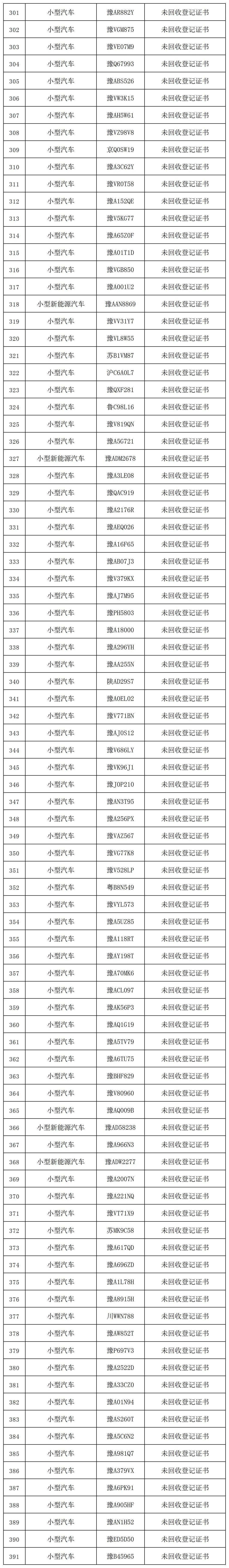 现对以下391辆机动车予以公告,牌证自公告发布之日起作废。