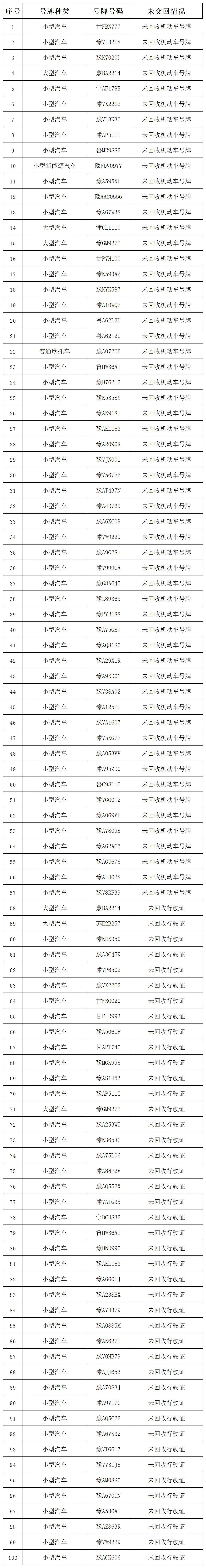 关于公告机动车号牌、登记证书、行驶证作废的通告