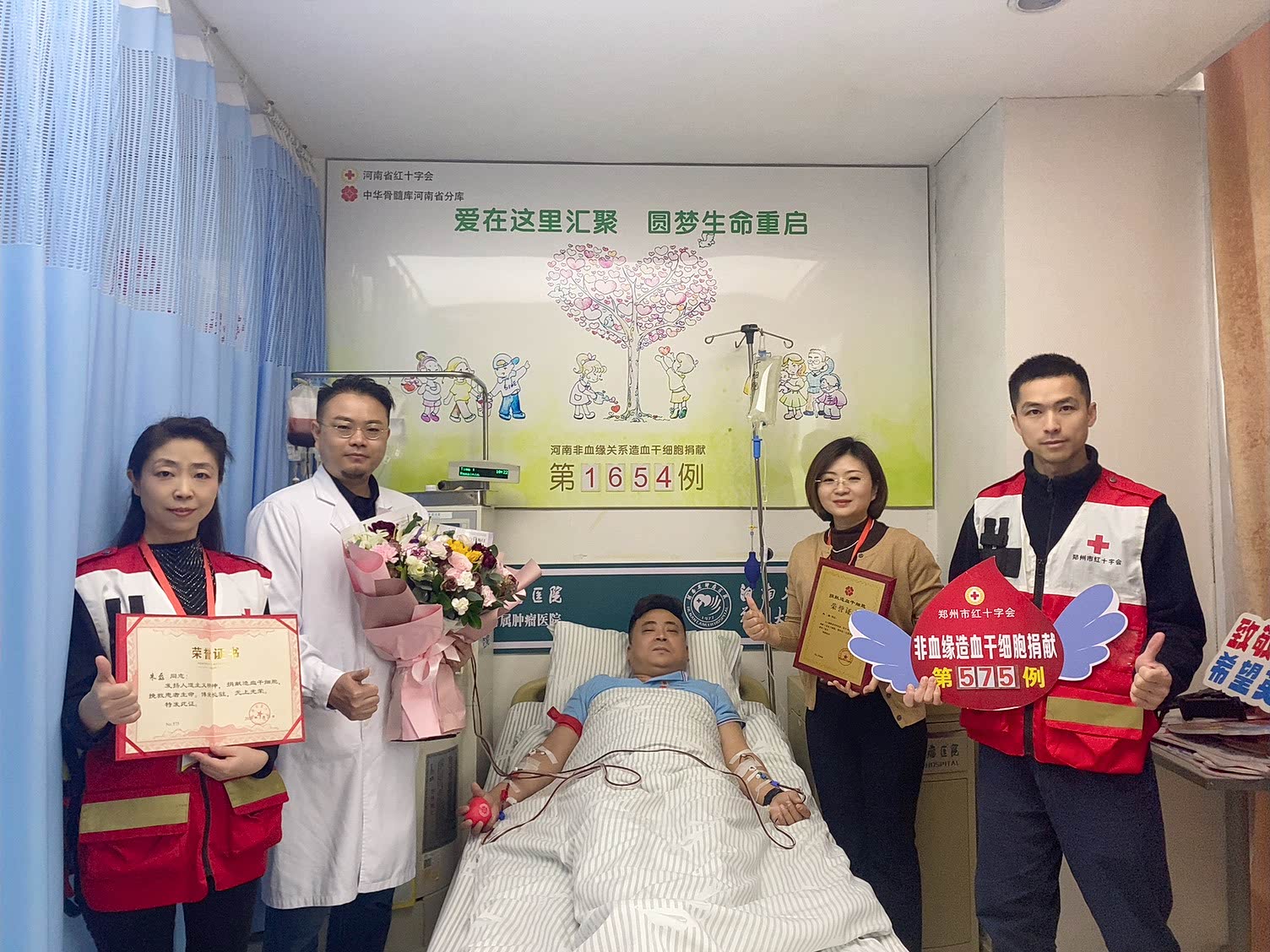 3月23日,来自郑州某物业服务公司的工程管理人员朱磊走进造血干细胞采集室捐献造血干细胞,为远方的血液病患者送去“生命种子”,成为郑州市第575位非血缘关系造血干细胞捐献者。