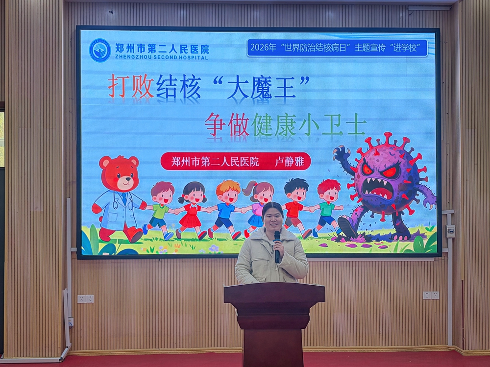 为迎接第31个“世界防治结核病日”,深入贯彻落实我国“全民行动、全力投入、全民参与、终结结核”的宣传主题,切实提升校园师生结核病防治意识,筑牢校园健康防线,3月23日下午,郑州市第二人民医院卢静雅医生走进二七区佛岗小学,开展以“打败结核‘大魔王’ 争做健康小卫士”为主题的防治结核病科普讲堂,为师生们带来了一堂生动的健康科普课。