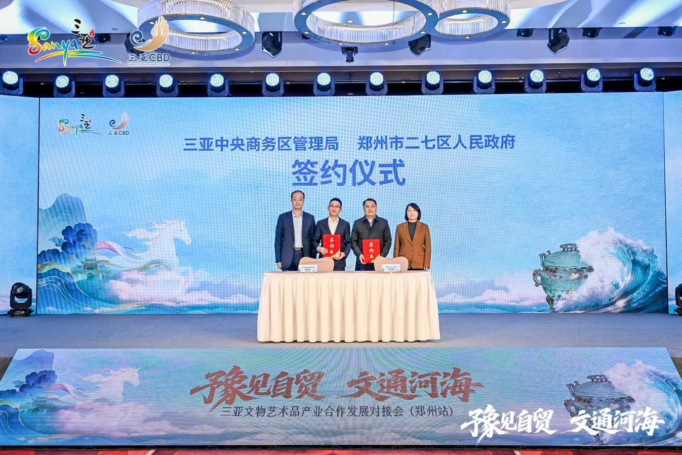 3月23日,由三亚中央商务区管理局主办的“豫见自贸·文通河海”三亚文物艺术品产业合作发展对接会(郑州站)在郑州市二七区举办。活动取得丰硕成果,三亚中央商务区管理局与郑州市二七区人民政府签订合作协议;国家对外文化贸易基地(三亚)与国家文化出口基地(开封片区)签约,实现南北文化贸易出口平台的有效联动。