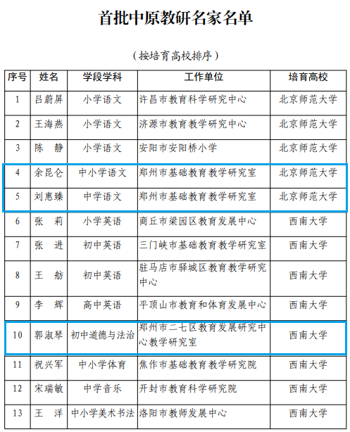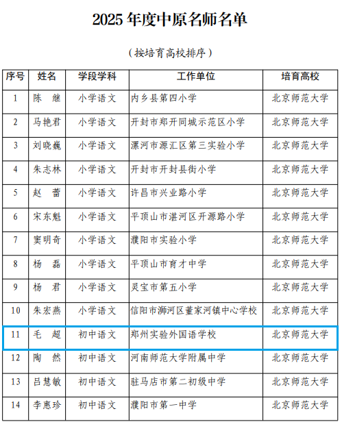 河南省教育厅最新消息,经专家组综合评议、复核推荐、项目办复审、省级确认等程序,确定陈继等80名教师为2025年度中原名师,吕蔚屏等22名教研员为首批中原教研名家,现予以公布。郑州地区名单已标蓝,跟着小微一起来看!