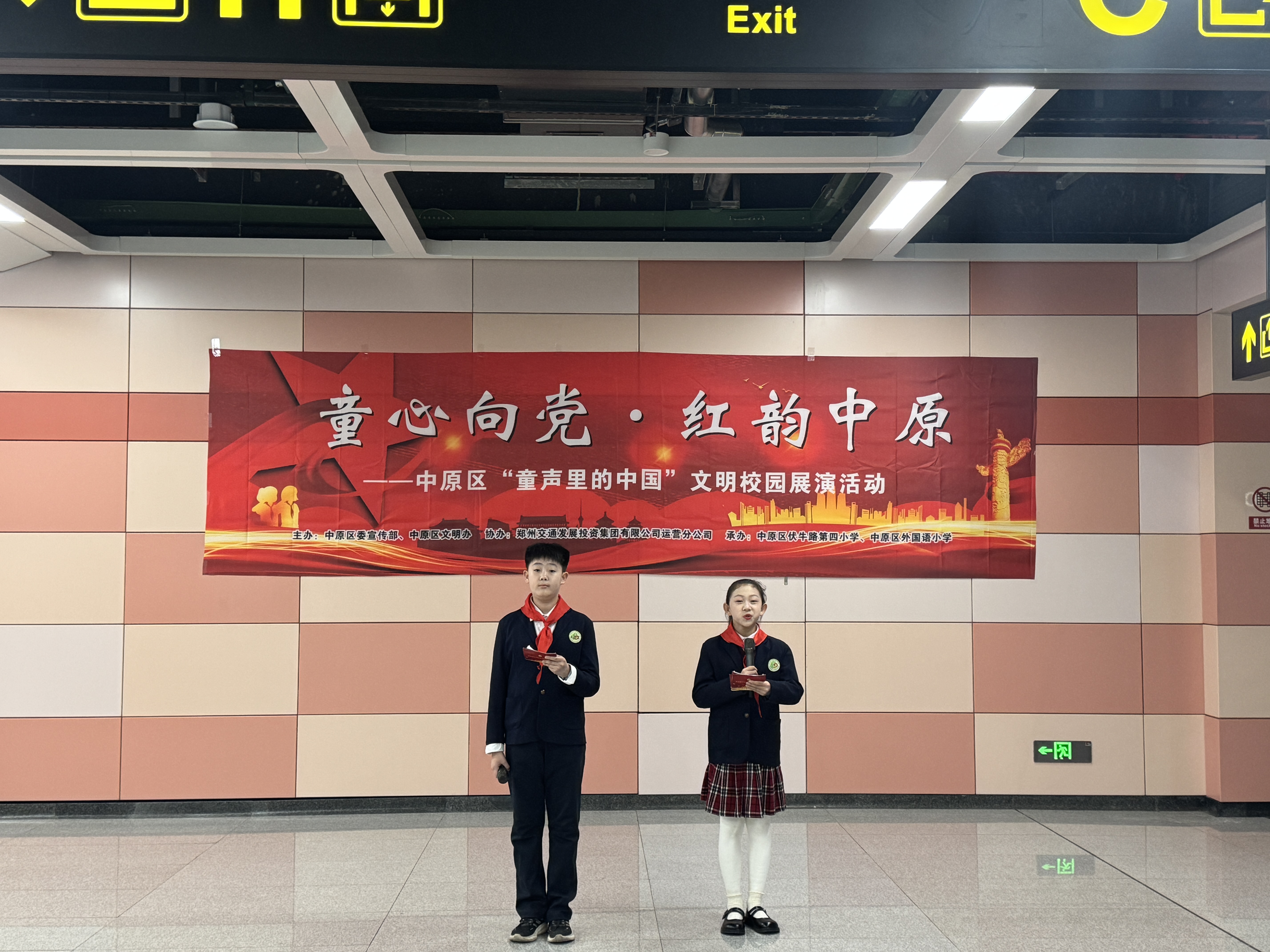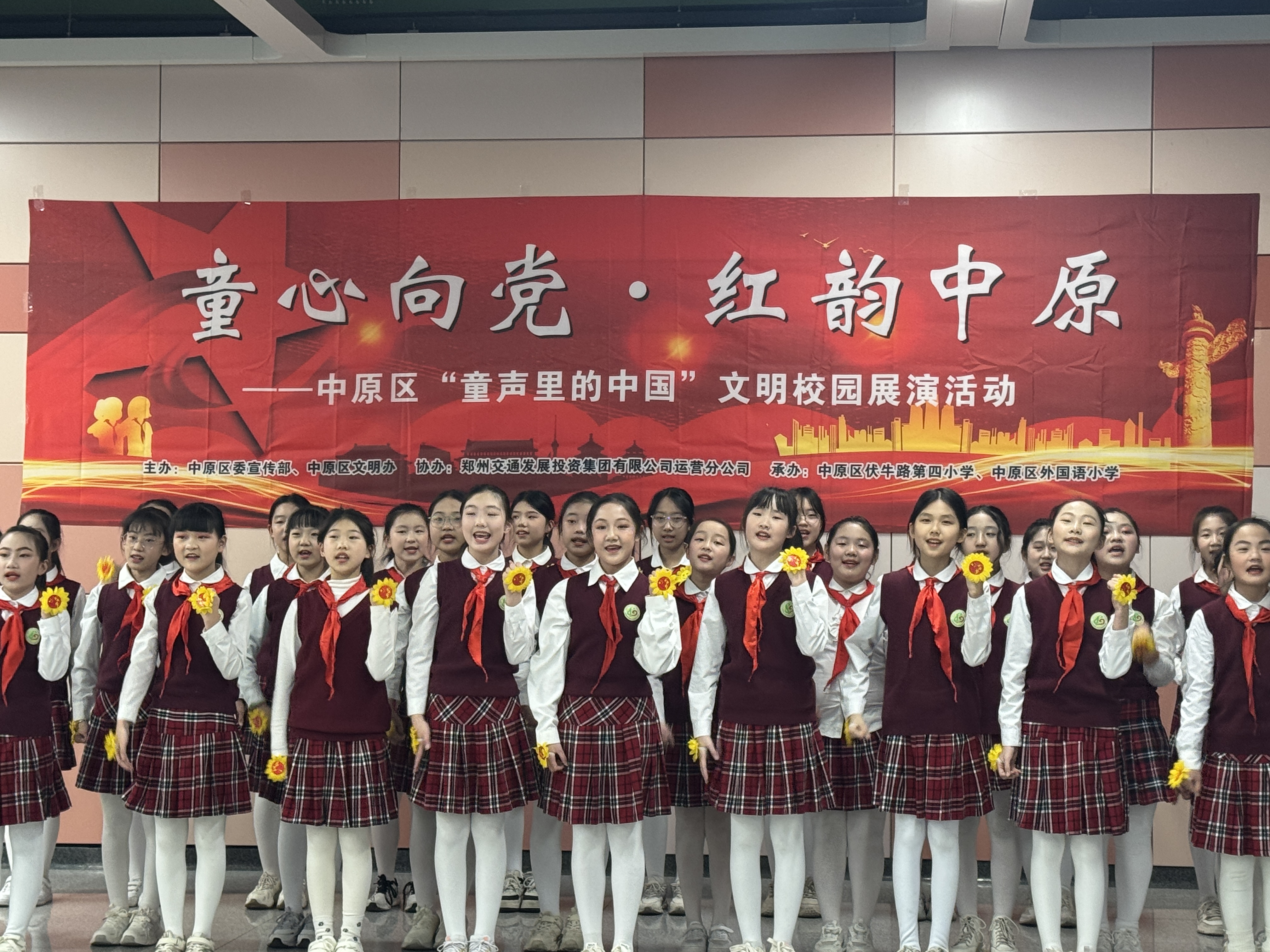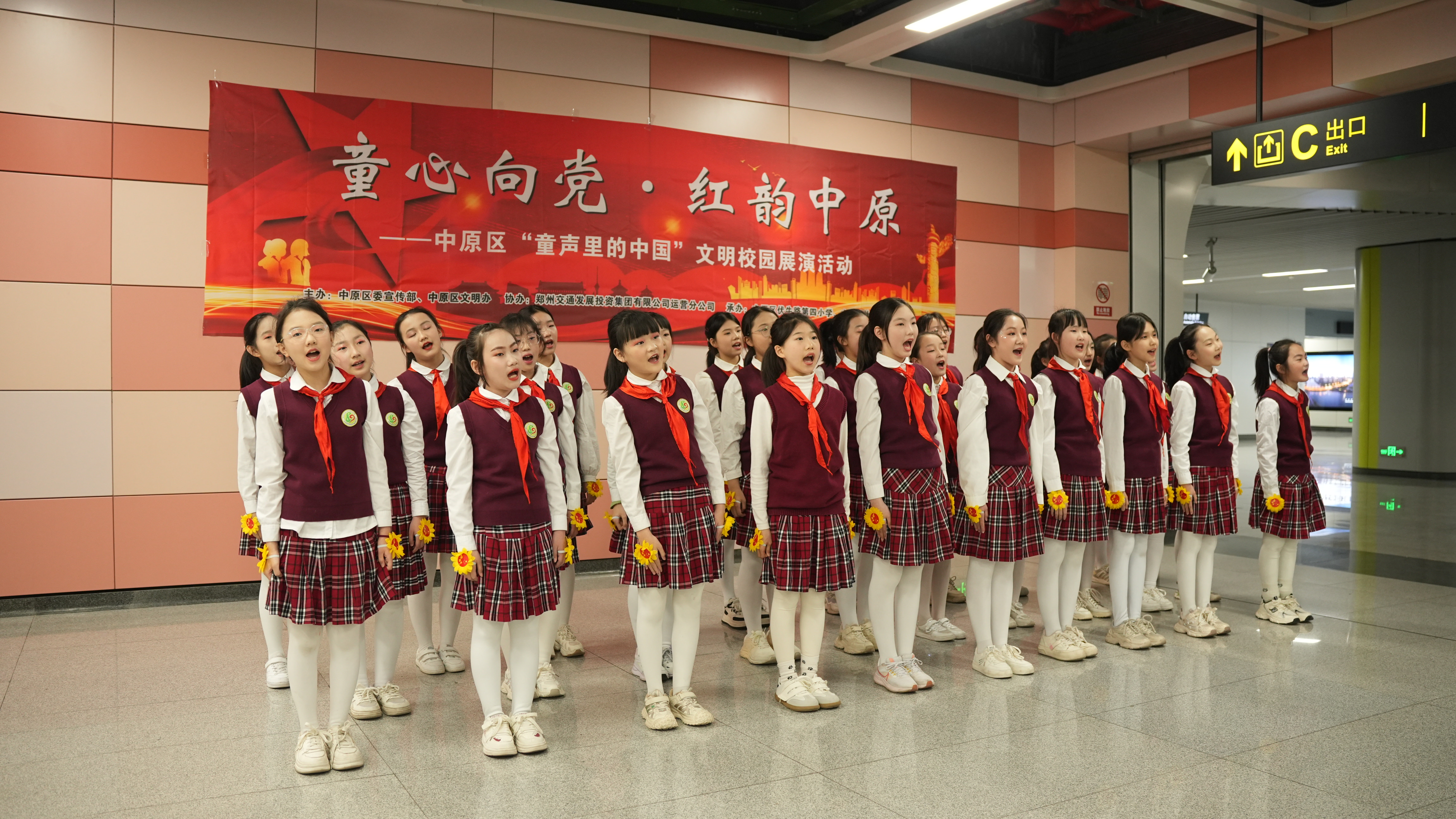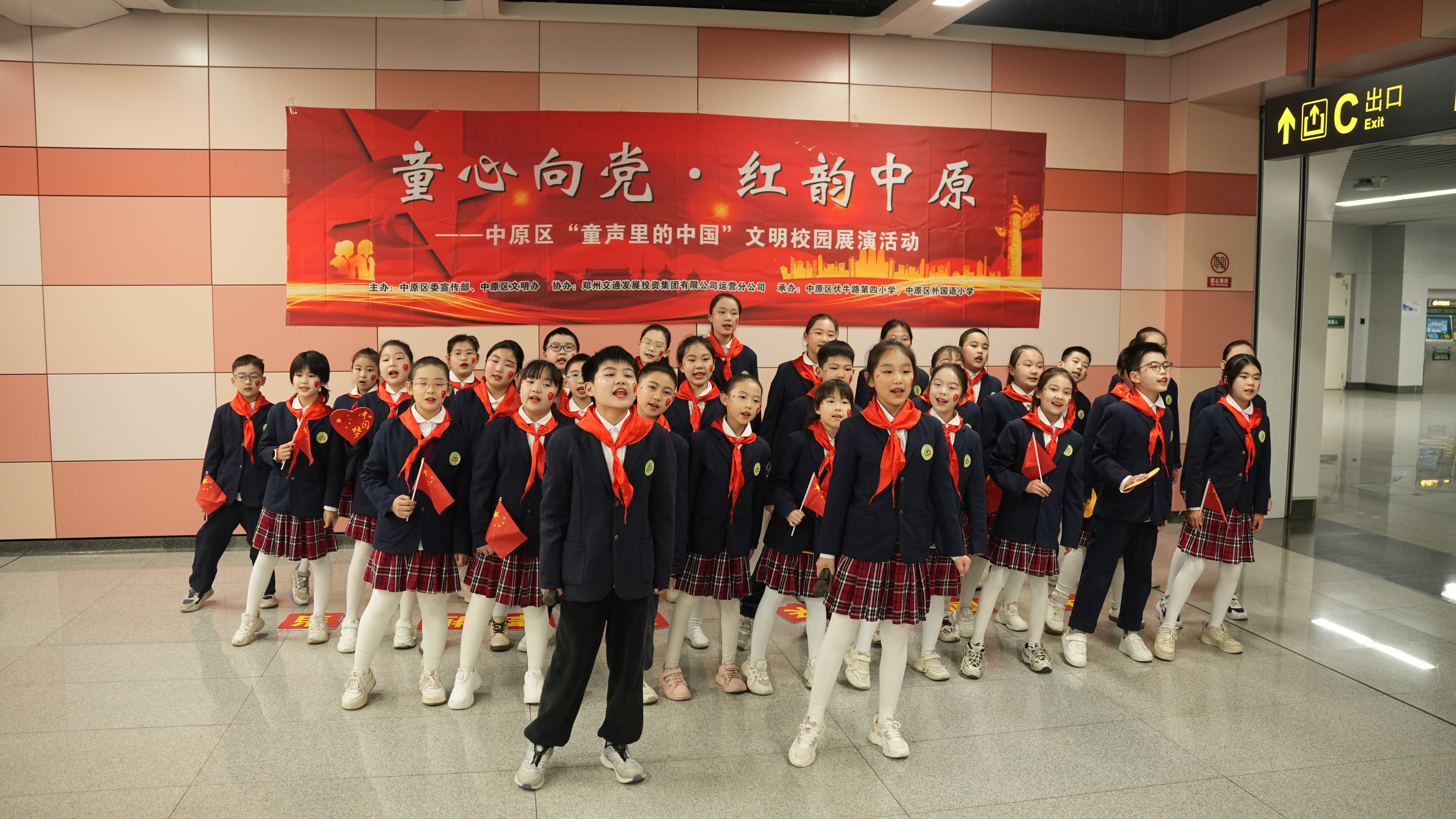 3月24日下午,郑州地铁5号线/10号线市中心医院站C出口,人流如织,却多了一份不同寻常的律动。由中原区委宣传部、中原区文明办主办,郑州交通发展投资集团有限公司运营分公司协办,伏牛路第四小学与中原区外国语小学共同承办的“童心向党 红韵中原”——“童声里的中国”文明校园展演活动,在这里温情启幕。