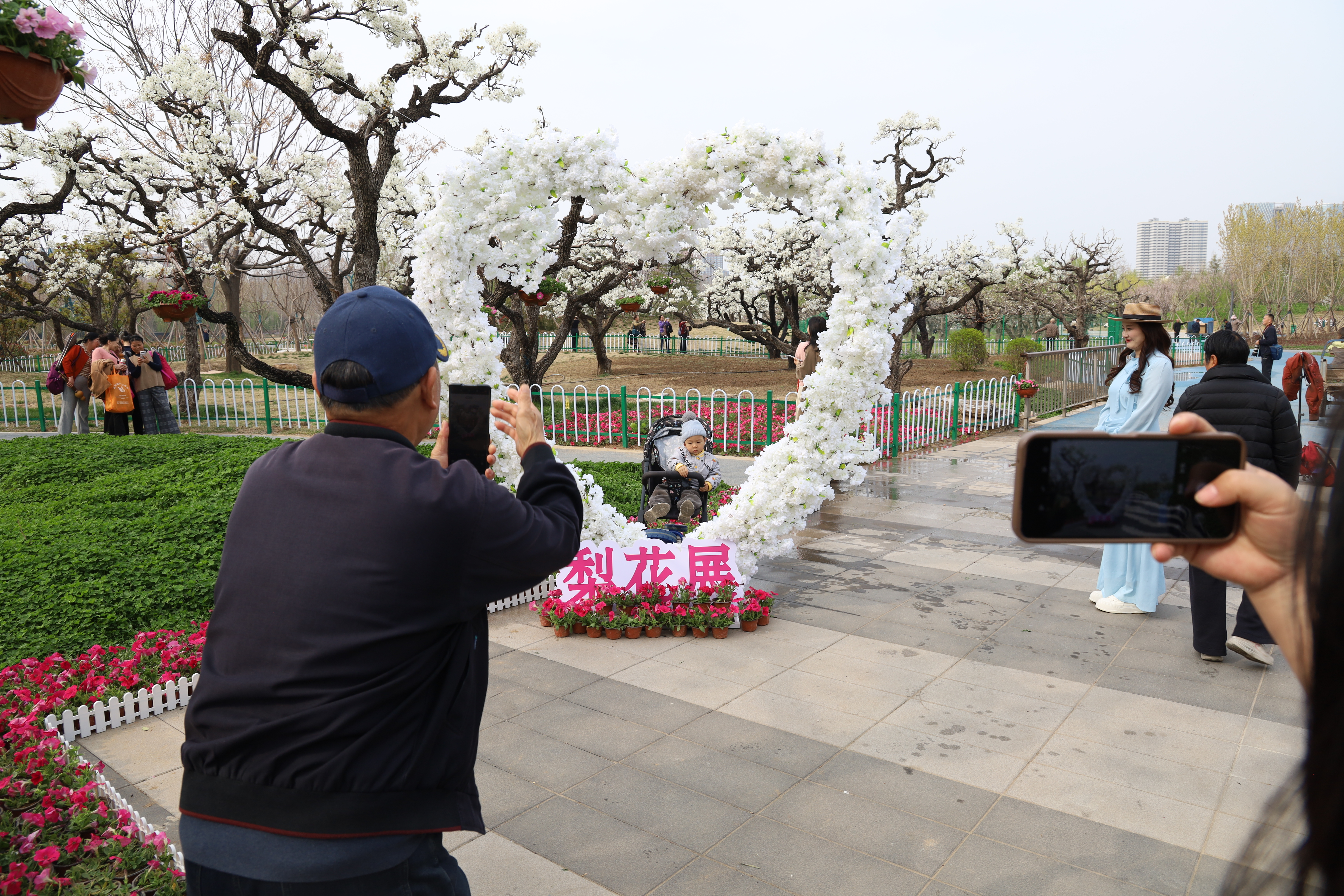 室外梨花展区以古梨树盛景为核心,设置多处网红打卡点供游客朋友们拍照打卡,打造多元化沉浸式赏花空间;古梨树文化展区以树为脉、以史为魂,系统展示园区古梨树的生长历史、生态价值与城市记忆,让市民在赏花中读懂郑州珍贵的城市绿色遗产,感受岁月沉淀的园林文脉。梨树盆景展区集中展出砀山梨、棠梨等精品盆景,园艺专家现场开展修剪造型讲解与科普互动,传递传统盆景技艺。室内插花展区以梨花为核心创作元素,荟萃中式传统插花、现代创意花艺等多元主题作品,匠心营造雅致美学空间,以沉浸式艺术互动拉近公众与花艺美学的距离,让市民在移步赏艺间感受传统花卉文化与现代园艺创意交融的独特魅力。