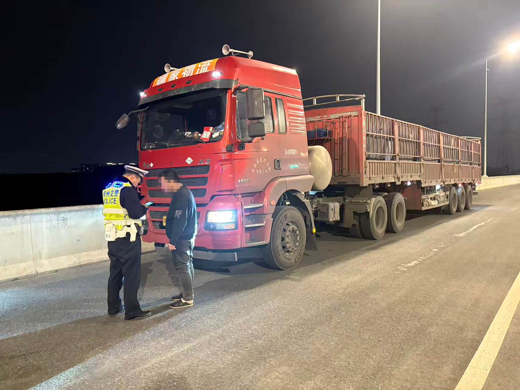 为了守护市民夜间出行安全,郑州交管二大队夜巡中队持续加强路面巡逻管控,以高压态势严查各类交通违法行为。近日,两辆重型货车因闯红灯接连被查,涉事驾驶员均因驾驶证超分被依法暂扣驾驶证。
