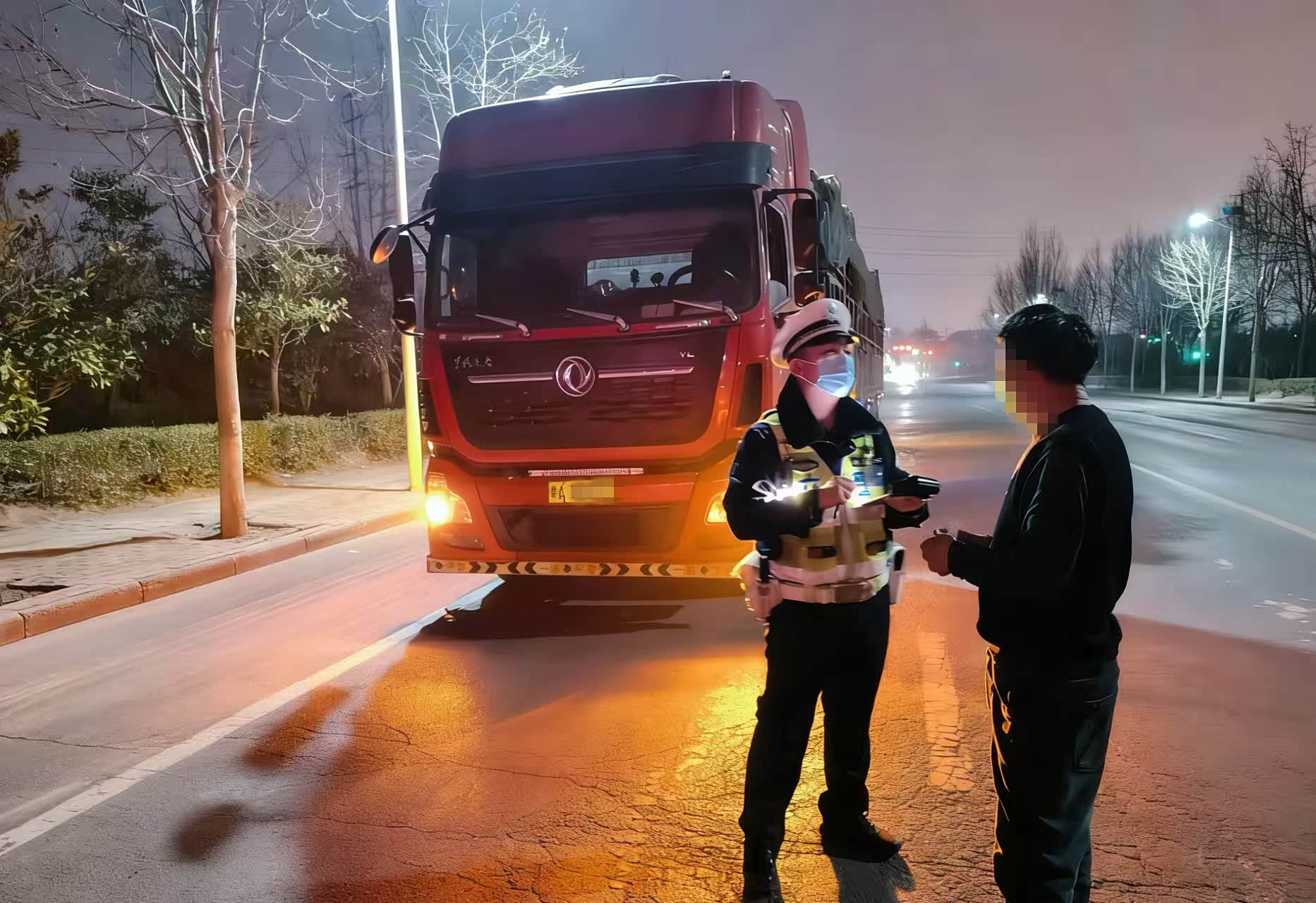 2026年3月23日22时26分,郑州交管二大队夜巡中队中队长乔峰、民警耿家强带领辅警杨宗耀在公安路开展夜间巡逻时,发现一辆号牌为豫A牌照的重型货车无视红灯信号,径直通过路口。民警迅速上前将其拦停,当场指出其违法行为的严重危害性,依法对驾驶员樊某“违反道路交通信号灯通行”的违法行为作出记6分、罚款200元的处罚。经核查,该驾驶员受到处罚后,驾驶证已累计达到12分,民警依法对其驾驶证予以暂扣。