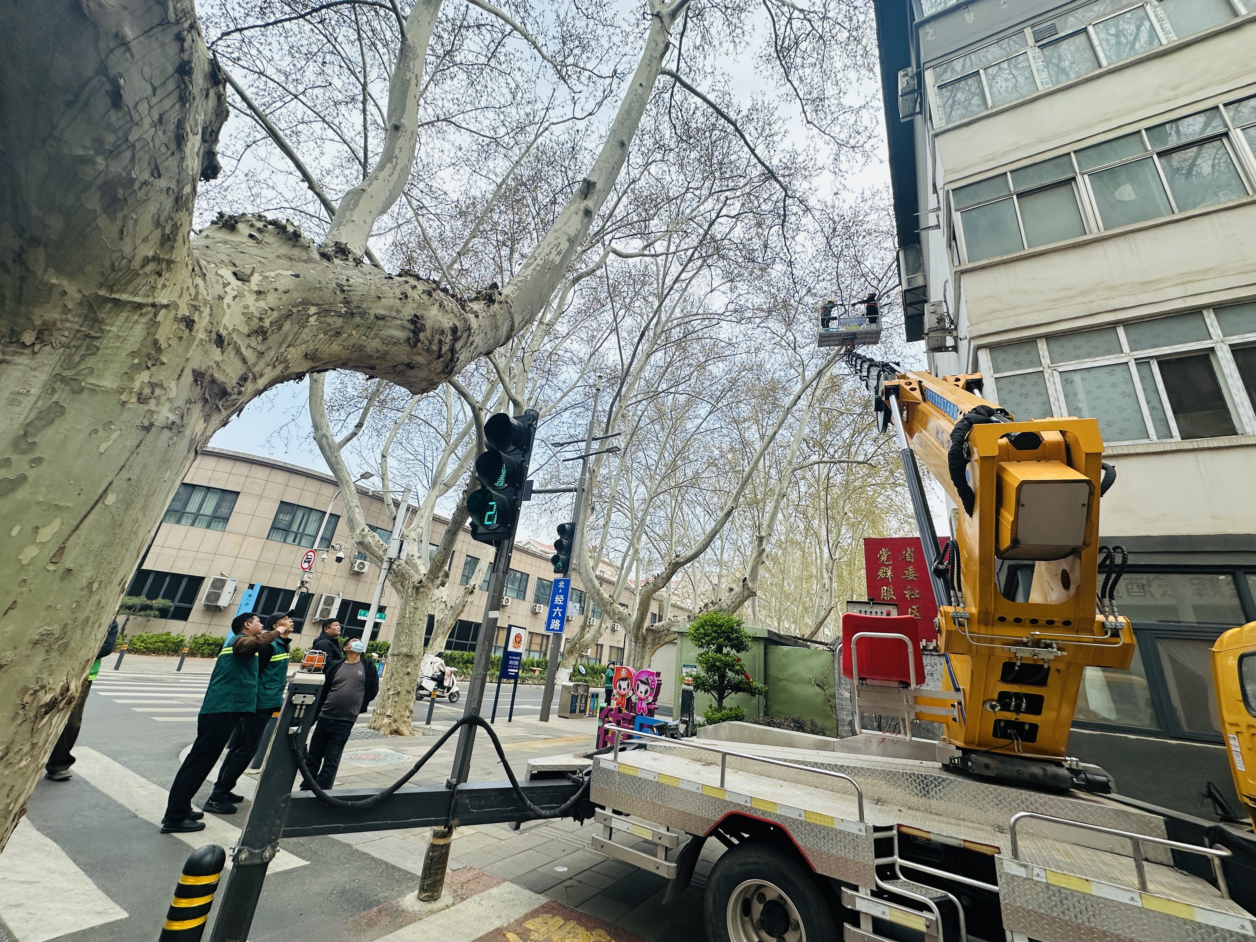 为进一步提升城市道路绿化景观品质,优化树木树形结构,近日,城管局绿化中心针对纬一路、人民路、经五路、经六路、经七路等有高大树木的路段进行专项修剪。上述路段多为粗约80公分,高度约25米,树龄约70年的法桐树木,根据《郑州市城市园林绿化条例》第三章第三十六条、第三十七条,属于重点保护树木,以纬一路为例,树木上方更是栖息有国家二级保护动物“夜鹭”,修剪难度较大。绿化中心秉持“科学修剪、兼顾生态”的原则,制定专项修剪方案,明确修剪范围、标准。