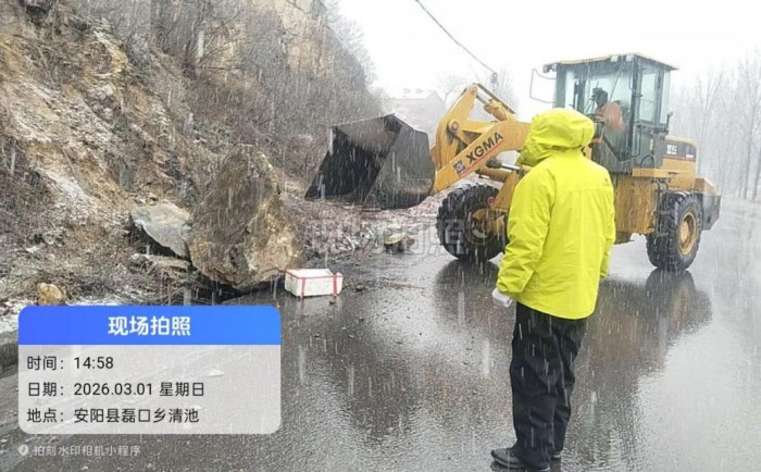 案例4:3月1日,河南省安阳市安全生产和防灾减灾救灾委员会办公室发布暴雪黄色预警风险提示,要求有关地方和部门切实做好风险防范应对工作。12时50分,殷都区磊口乡清池村灾害风险隐患信息报送员王国庆巡查时发现,安姚路清池路段突发山体岩质崩塌,巨大落石阻断道路,叠加暴雪天气路面湿滑结冰,极易引发重大交通事故,于是立即上报。13时50分,区交通运输局紧急调配铲车等专业设备赶赴现场,开展落石清理、道路封控等应急处置。16时40分,完成路面清理工作。由于风险隐患发现处置及时,无人员伤亡。